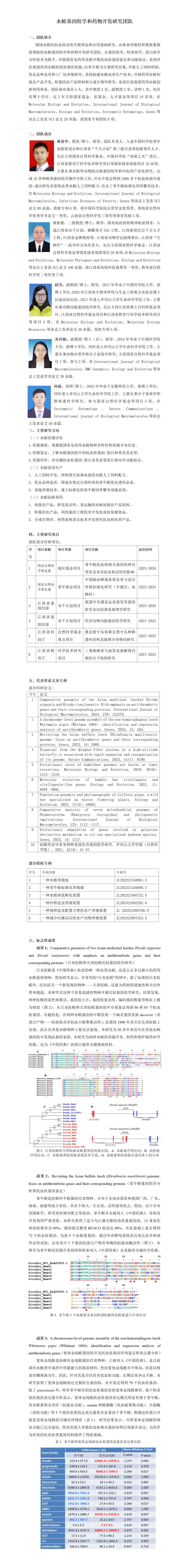 水蛭基因组学和药物开发研究团队