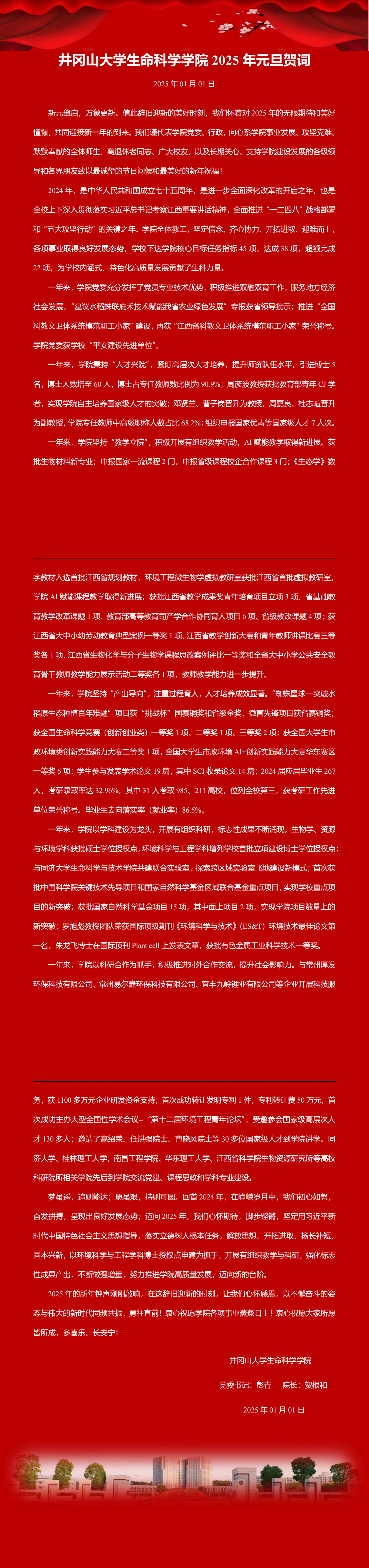 生命科学学院2025年元旦贺词