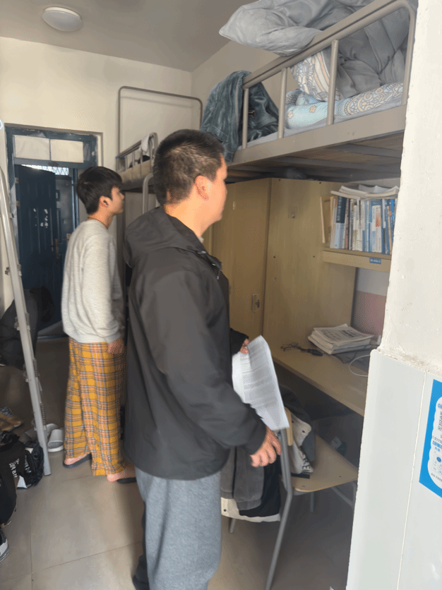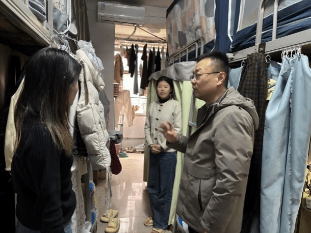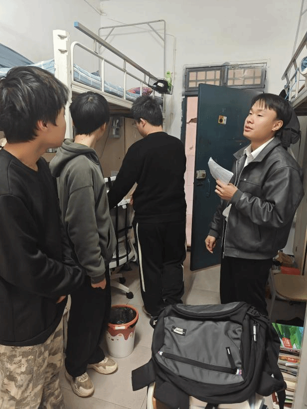走访过程中,学院领导与辅导员们对照宿舍安全排查清单,逐项检查门窗闭合情况、水电设施运行状态,重点查看是否存在私拉乱接电线、违规使用大功率电器等安全隐患。针对排查中发现的地漏堵塞、人离未断电等问题,老师们当场督促同学们整改,并提醒大家及时将门窗故障、水管漏水等情况上报楼栋值班室,确保宿舍设施安全无虞。