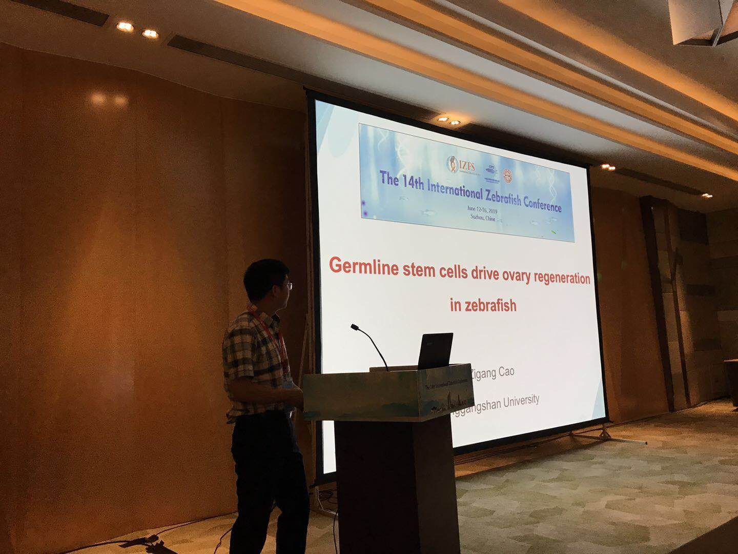 2019年6月12-16日,第14届国际斑马鱼大会在苏州举行,我院曹子岗博士应邀做题为“Germline stem cells drive ovarian regeneration in zebrafish”的大会报告,获得与会学者一致好评并进行了广泛深入的讨论。众多国内外学者认为该项研究成果立题新颖,研究技术方法多样,为生殖再生研究提供了很好的范本。