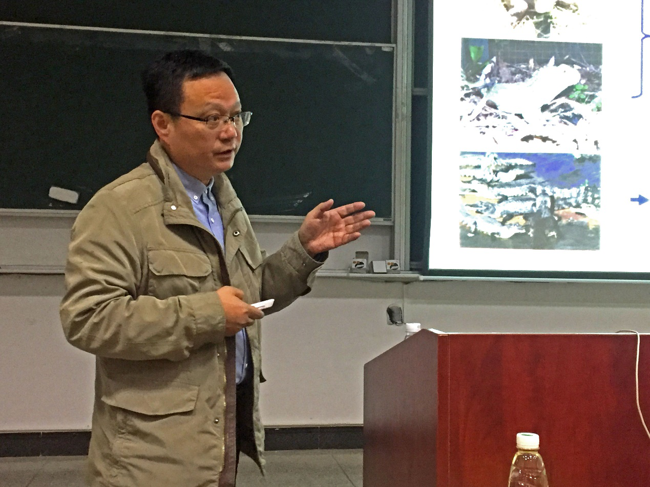 应学院邀请,12月18日下午南京师范大学生命科学学院博士生导师计翔教授在5栋104为我院师生作了题为“爬行动物卵胎生的进化成因和选择劣势补偿”的学术报告。报告会由黄族豪院长主持,学院动物学教研室所有老师、2017级生物科学和生物技术专业学生共130余名人聆听了报告。