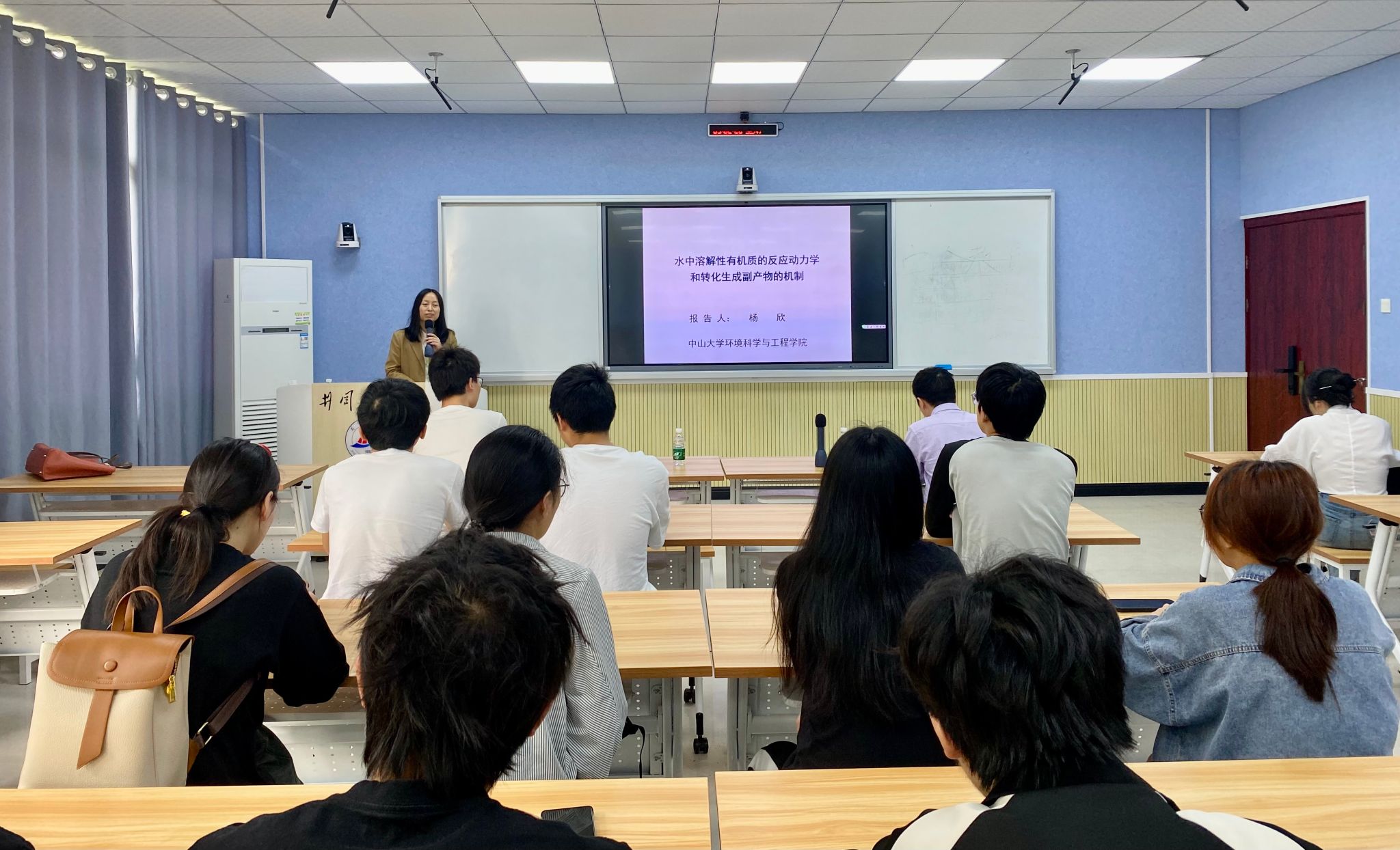 报告会上,杨欣从饮用水安全处理角度出发,全面系统介绍了水体溶解性有机质在饮用水深度处理工艺中的作用,揭示了溶解性有机质反应活性基团的定向调控机制。杨欣的报告深入浅出,令在场师生深受启发,与师生们进行了热烈的探讨与交流,现场气氛热烈。