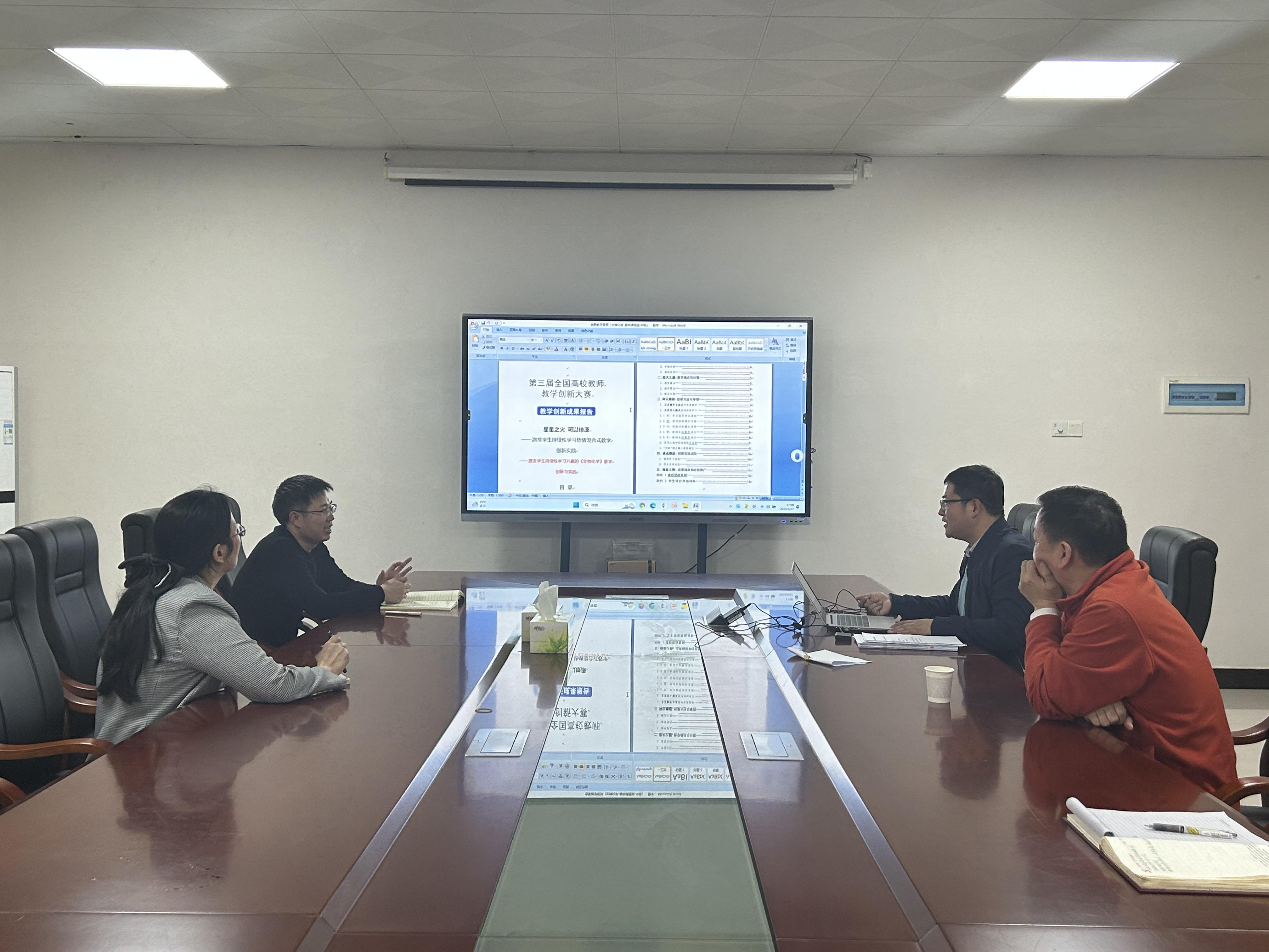 为备战第三届全国高校教师创新大赛,4月27日下午,学院在21-418会议室开展了第三届全国高校教师教学创新大赛赛前指导活动,学院院长贺根和、副书记何旭梅、专业负责人朱立成对学院参赛教师周嘉良进行了指导。