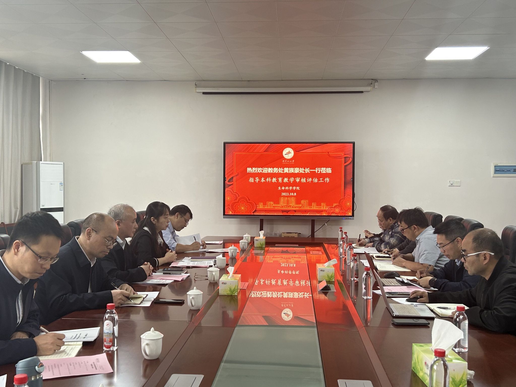 为深入了解各二级学院迎评工作进展,扎实推进学校本科教育教学审核评估工作。10月8日上午,教务处黄族豪、教育教学评估中心副主任曾建军、学校审核评估专家昌庆钟、材料组成员,校督导深入学院督查,学院院长贺根和、副院长周兵、肖小雨、生态环境与资源研究中心副所长段世华、及相关科室负责人、专业负责人、教研室主任和教师代表参加了会议,会议由曾建军主持。