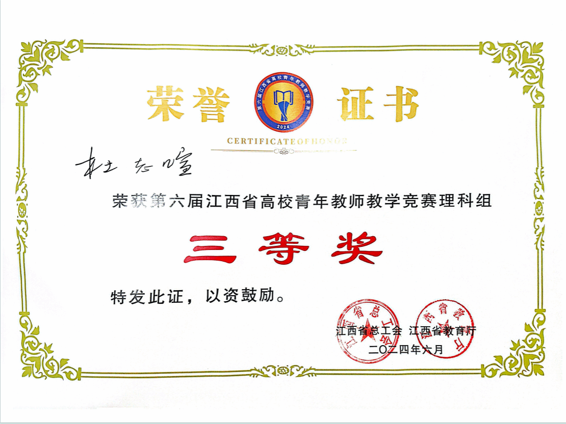 近日,我院参赛教师尹丽主讲的《环境工程微生物学》获第四届江西省高校教师教学创新大赛产教融合赛道三等奖,杜志喧老师在第六届江西省高校青年教师教学竞赛中获理科组三等奖。