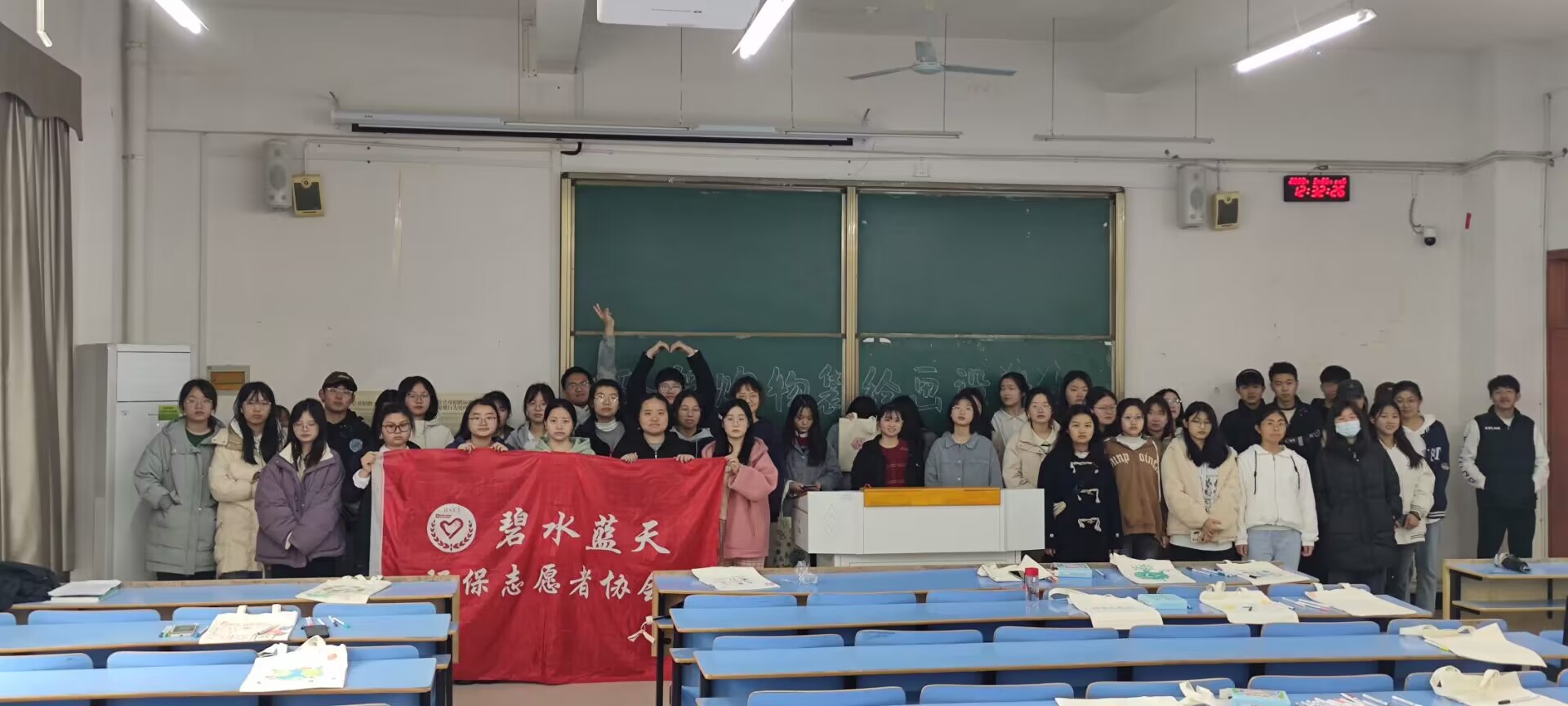 为抵制白色污染,让绿色环保渗透生活,碧水蓝天环保志愿者协会于2023年3月25日中午12时在11栋B106举行环保购物袋绘画设计活动。此次活动由碧水蓝天环保志愿者协会理事长曾小婷主持,协会其他成员协助,一百余名同学参与。
