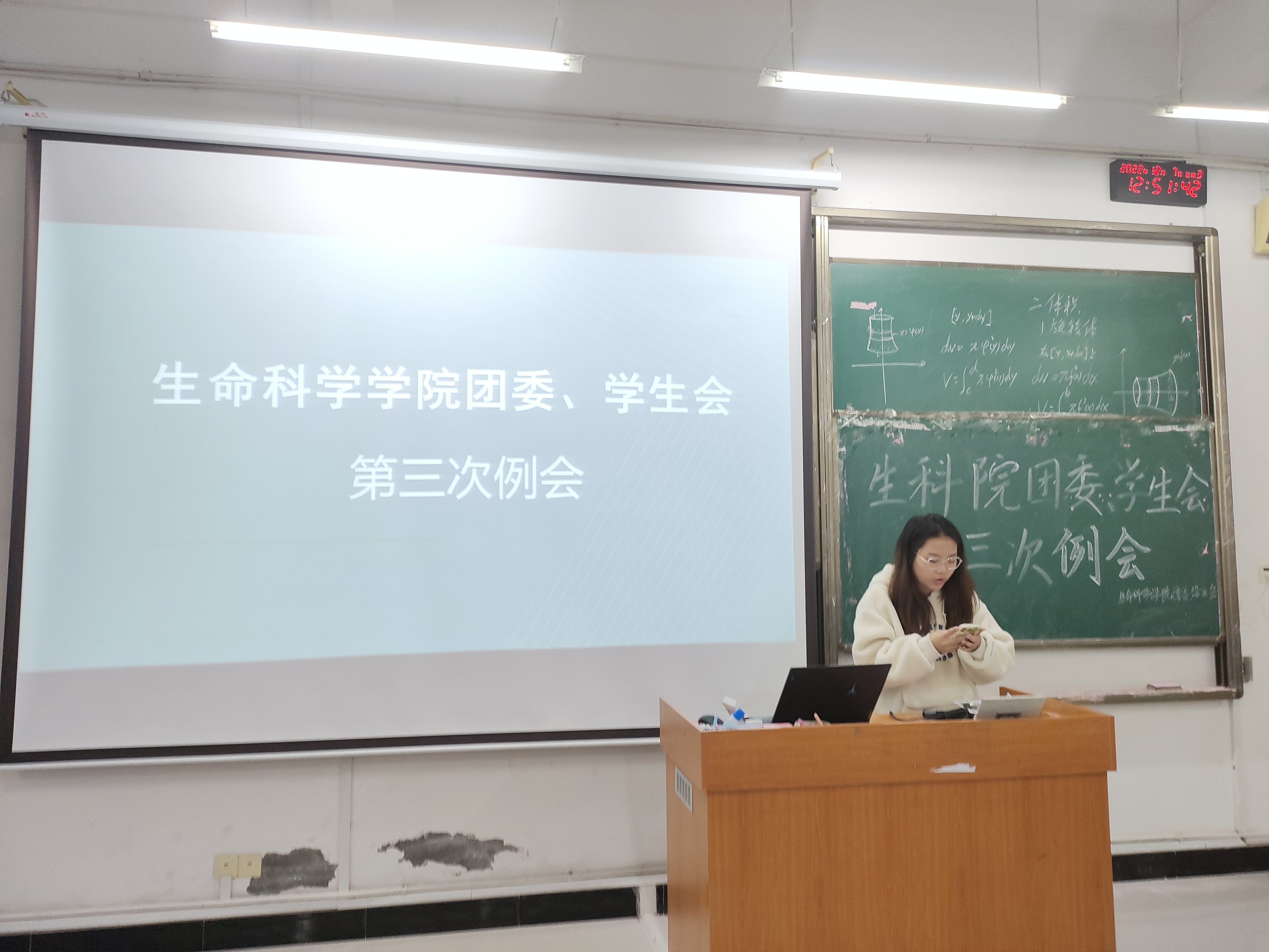 井冈山大学生命科学学院第十七届团委、学生会第三次例会与12月7号中午12:30在11-b104顺利召开,本次会议由院学生会执行主席王天刺主持,学生会全体成员共计九十余人参加。