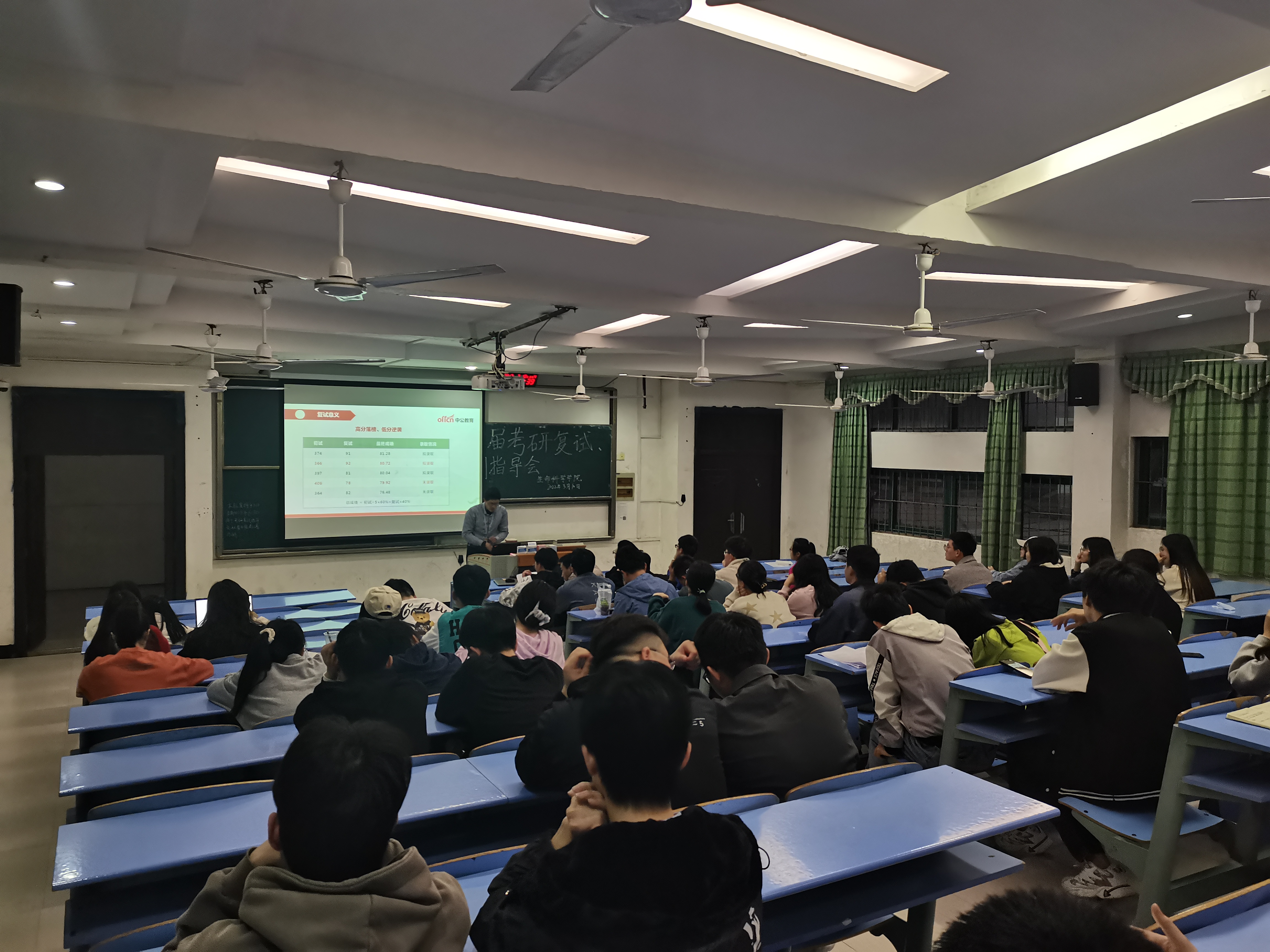 为了更好的解答我院考研学生对复试和调剂的疑惑,帮助考研学生以更好的状态进入复试和调剂阶段。3月10日晚上,我院在9栋108进行2022届考研复试调剂指导会。我院邀请中公教育复试经验丰富的老师主讲,18级考研学生和部分19、20、21级学生共计60人参加了本次指导会。