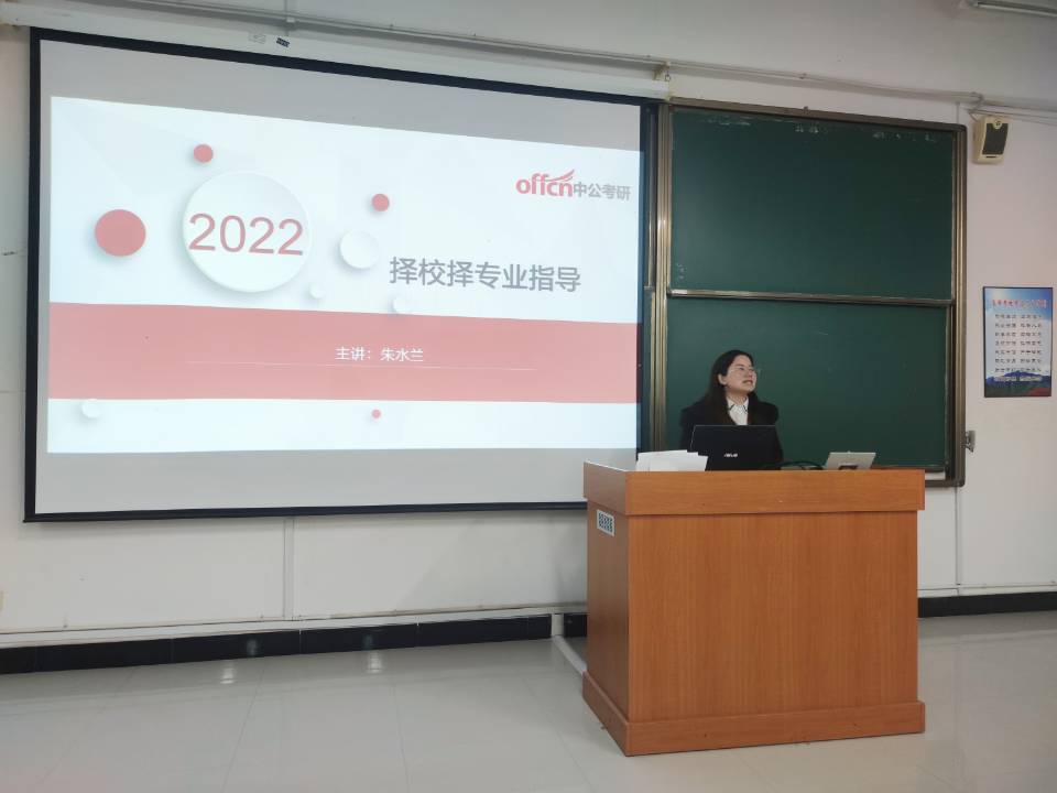 讲座中,指导老师以实例讲述了考研对于以后生活带来的巨大帮助,鼓励同学们继续学习,为将来更好的就业打下基础。他从个人需求和自我能力两个方面,建议同学们从地区、院校、专业三个方面综合思考选择考研目标。指导老师提出了“努力+选择=成功”的观点,就学硕与专硕的区别为大家做了详细的解释,并建议同学们仔细考虑报考的研究生类型。同时,罗列了一些较好院校以供大家参考,并提醒同学们牢记考试预报名和实际报名的截止时间。