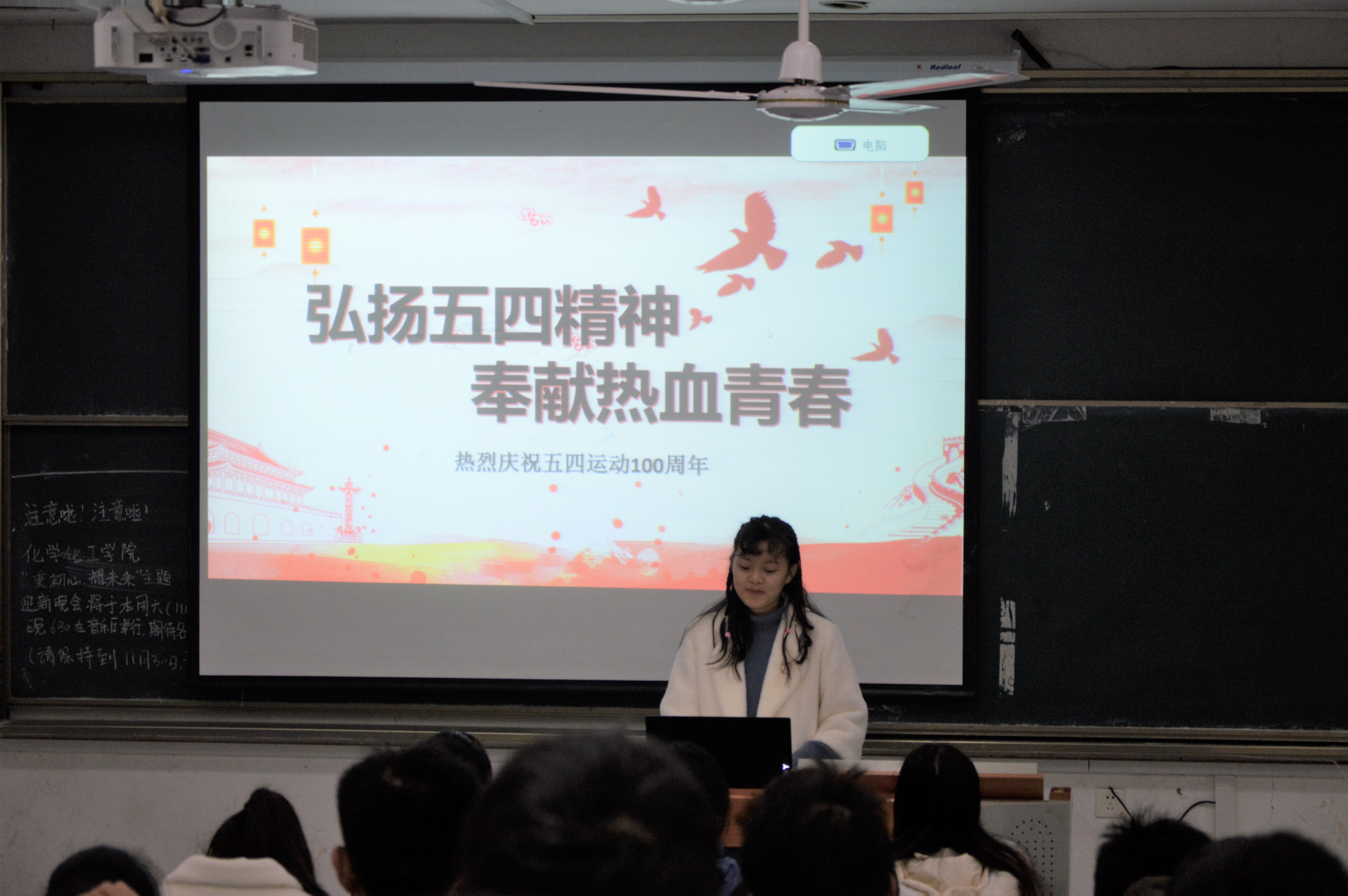 12月1日上午,我院于九栋108教室开展“弘扬五四精神,奉献热血青春”主题团课,课程主讲人为学生团委副书记陈红,青马班全体学员共计八十余人到场聆听。