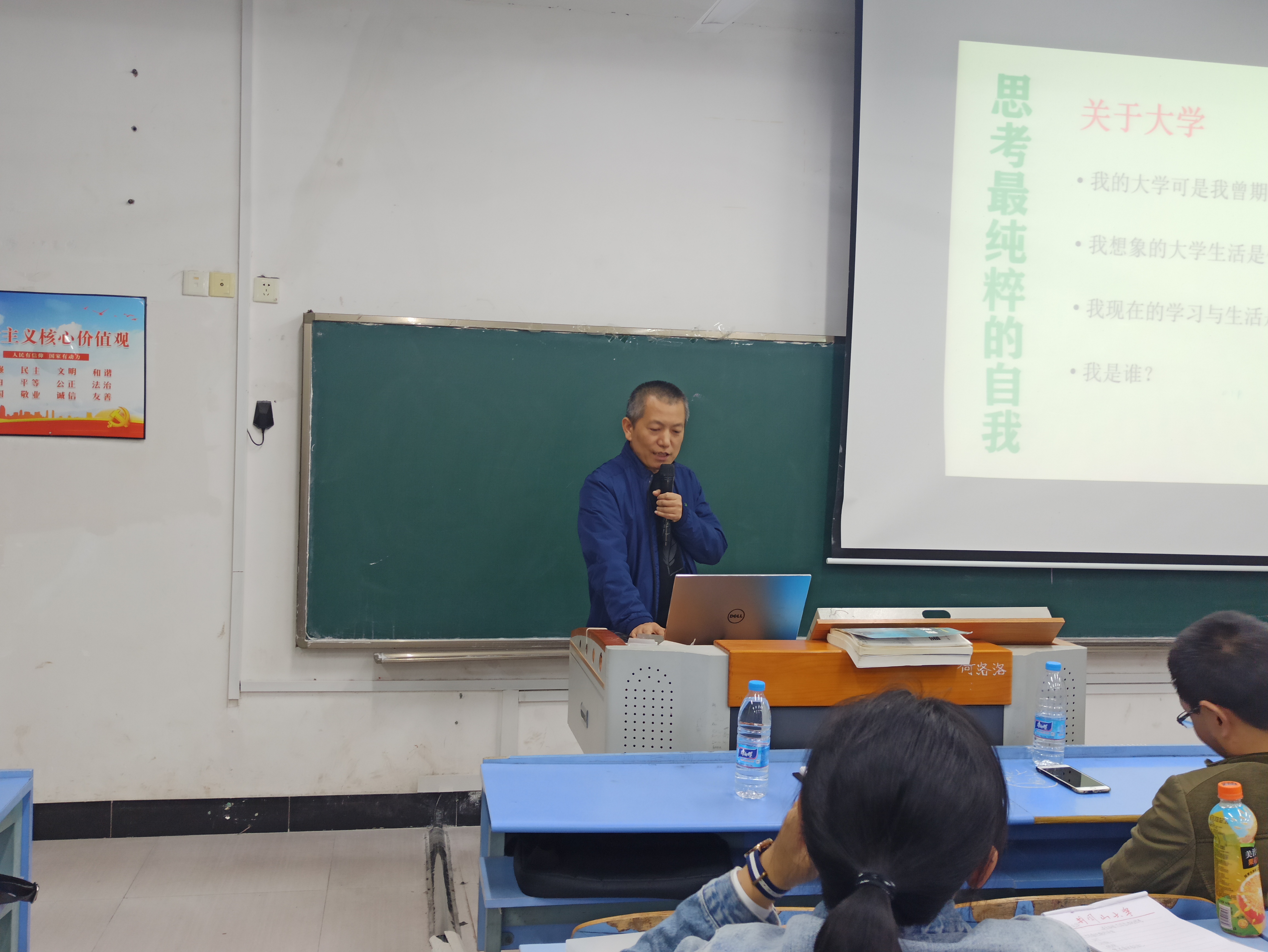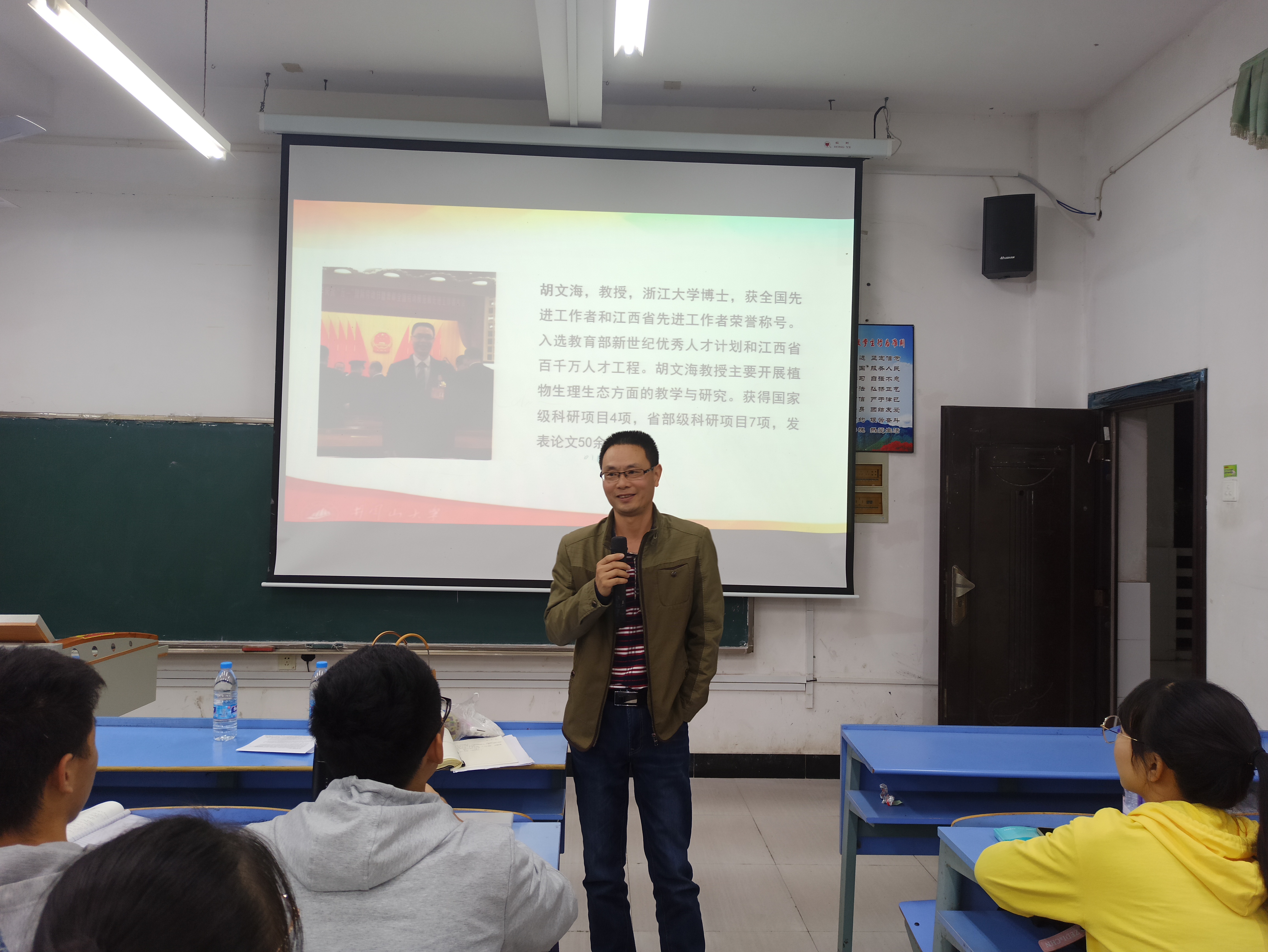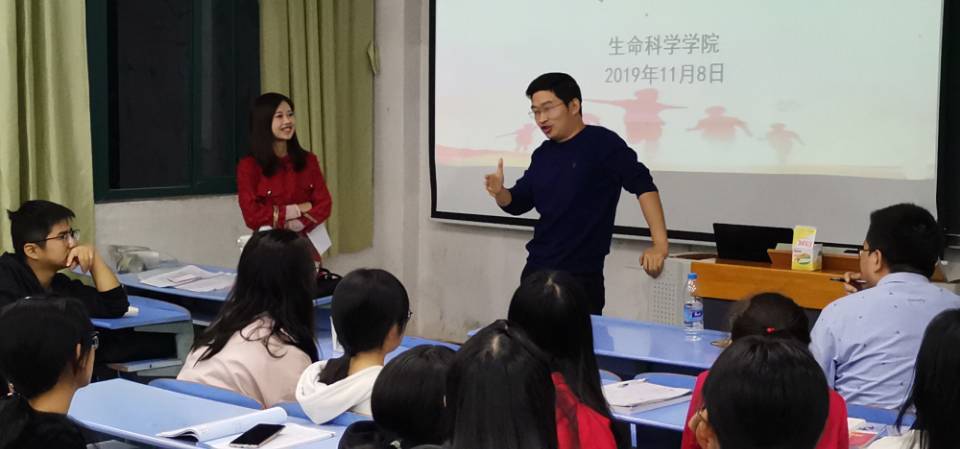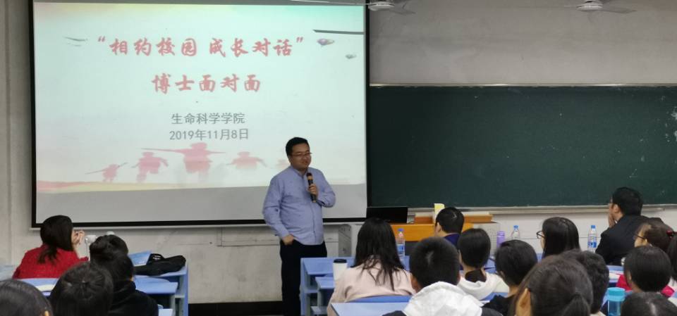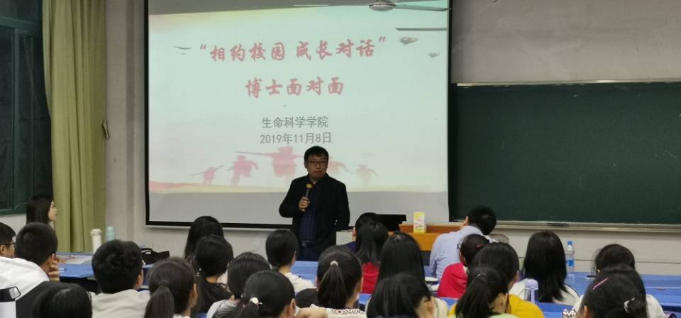 106教室中,曹子岗博士主要介绍了生物科学专业的相关知识与主干课程,旨在让同学们对本专业有更深入的了解。接着是熊光华老师博士提出在大学这个关键阶段,我们需要确立自己的人生目标。之后周兵博士建议同学们首先做出整体规划,再定下小目标,并长期坚持,他指出,无论起点多低,努力就会有收获。