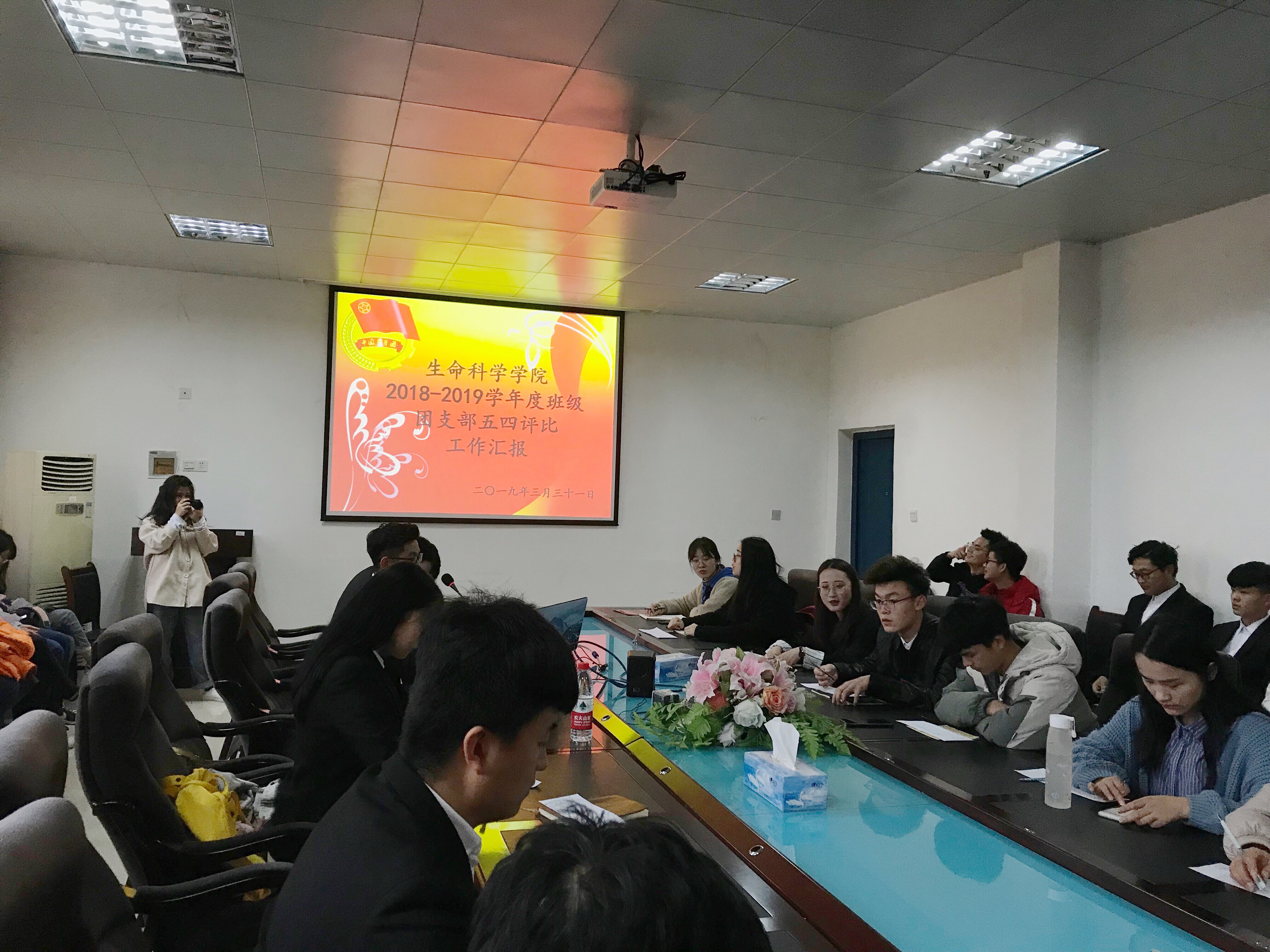 此次汇报评选会共有18个班级参与评比。任老师在会议前向我们阐明了五四评比的意义所在,并希望大家通过此次五四红旗团支部评选,各团支部之间能够相互学习、相互进步、取长补短,在之后的日常工作中要善于总结,进一步提升工作能力,将工作水平提升到一个新的高度。随后,各支部就深化思想引领、团支部建设、团日活动、创新创业、团支部特色等方面配以音乐与视频进行了精心的展示与汇报,真实而全面的反映了一个个各具特色、活力无限的团支部的精神面貌。