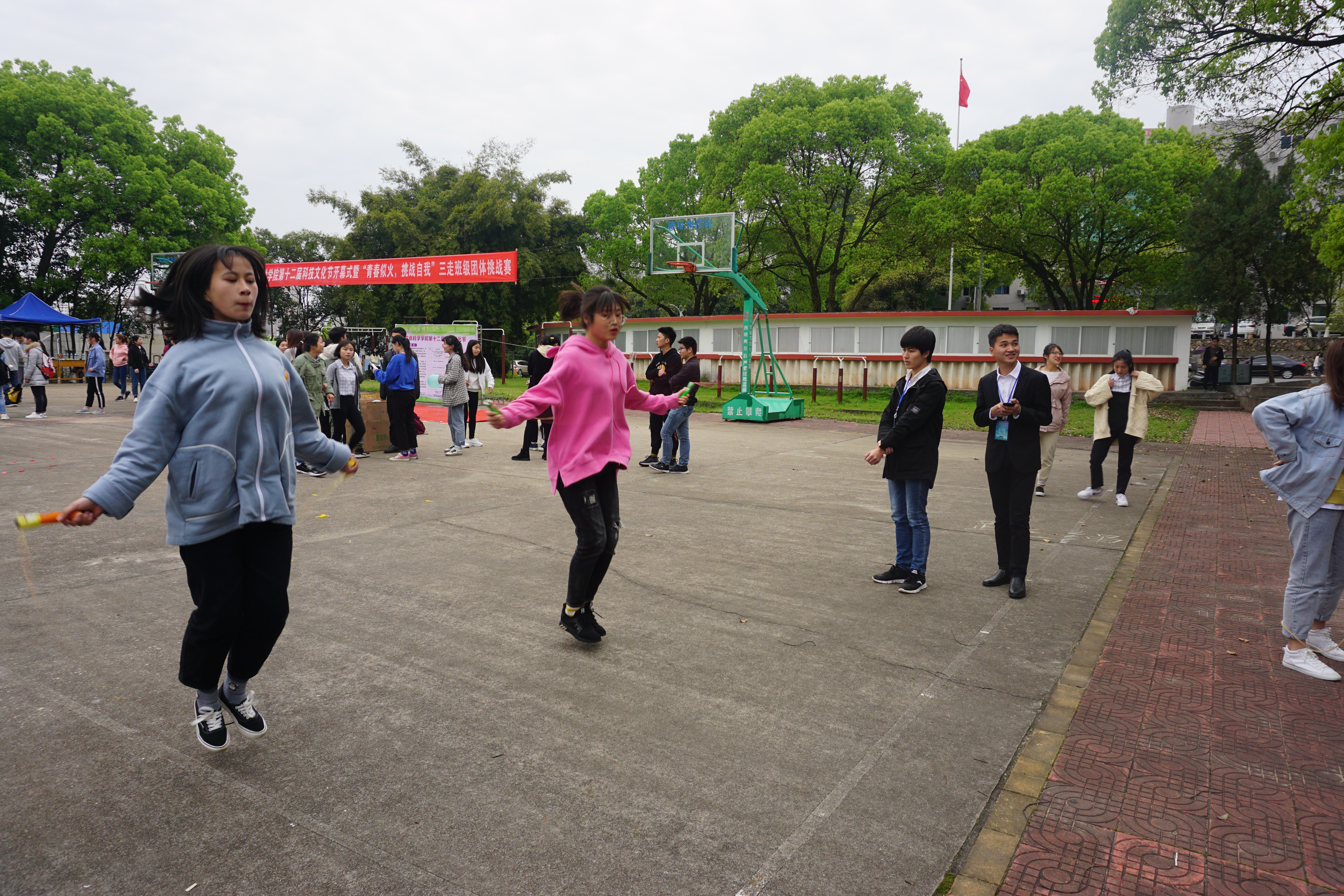4月1日下午,我院第十二届科技文化节系列活动之“三走”班级团体挑战赛在五栋篮球场拉开帷幕,校团委书记李泉、院党委书记肖南、院长黄族豪、院党委副书记彭青、学管老师、各班班主任以及四百余名学生参与了此次活动。