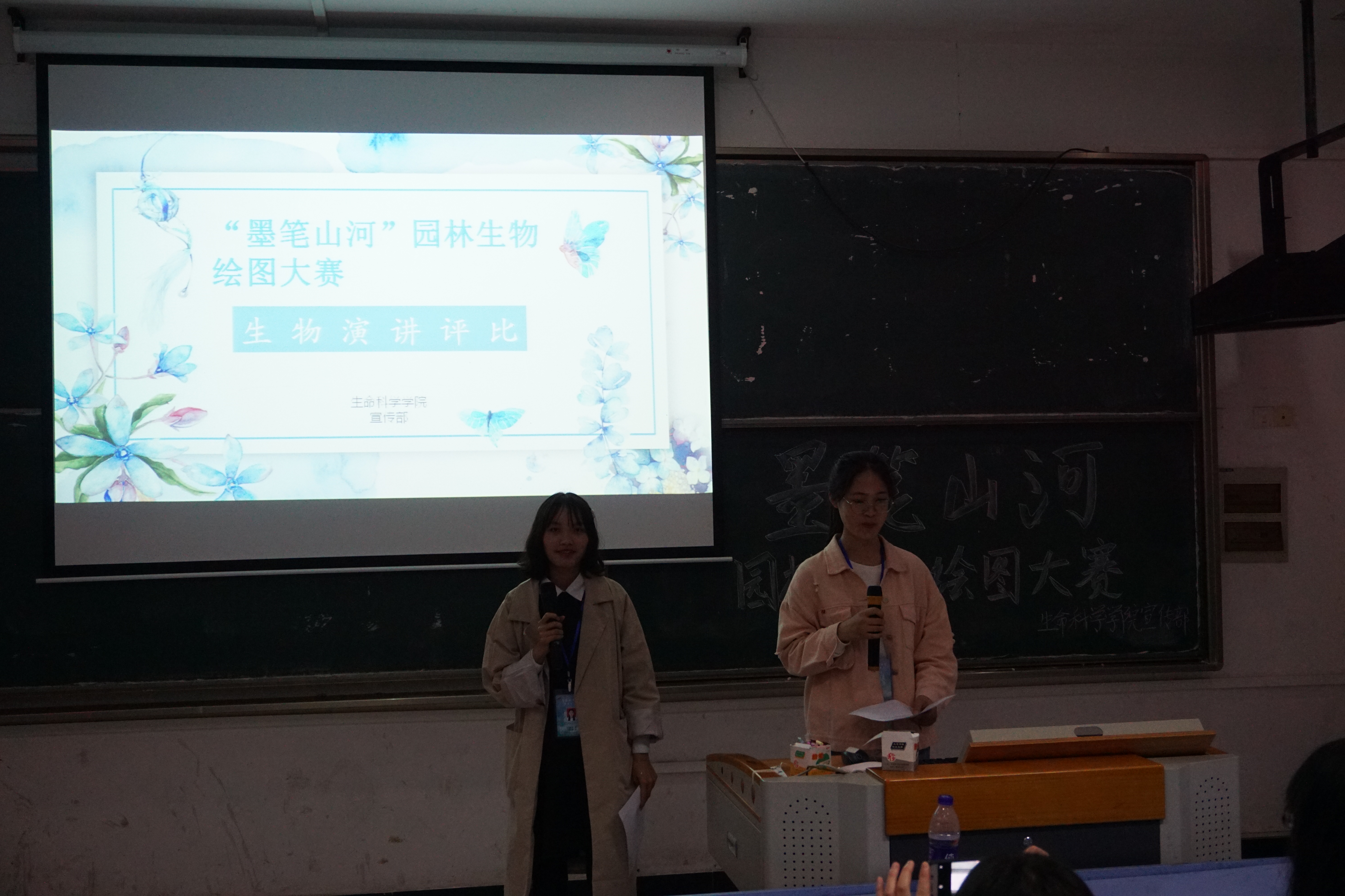 4月15日晚,由我院团委学生会宣传部承办的“墨笔江山”园林生物绘图讲解大赛在9栋409顺利举行。学院蒋凯老师、就业服务部部长柳梦娇、宣传部部长潘元强、上届生物绘图大赛获奖者李香莲和张苏晴担任本次大赛的评委。