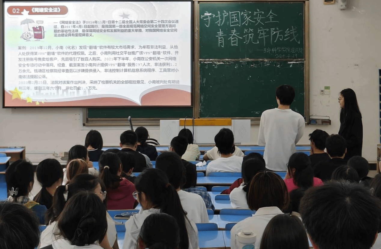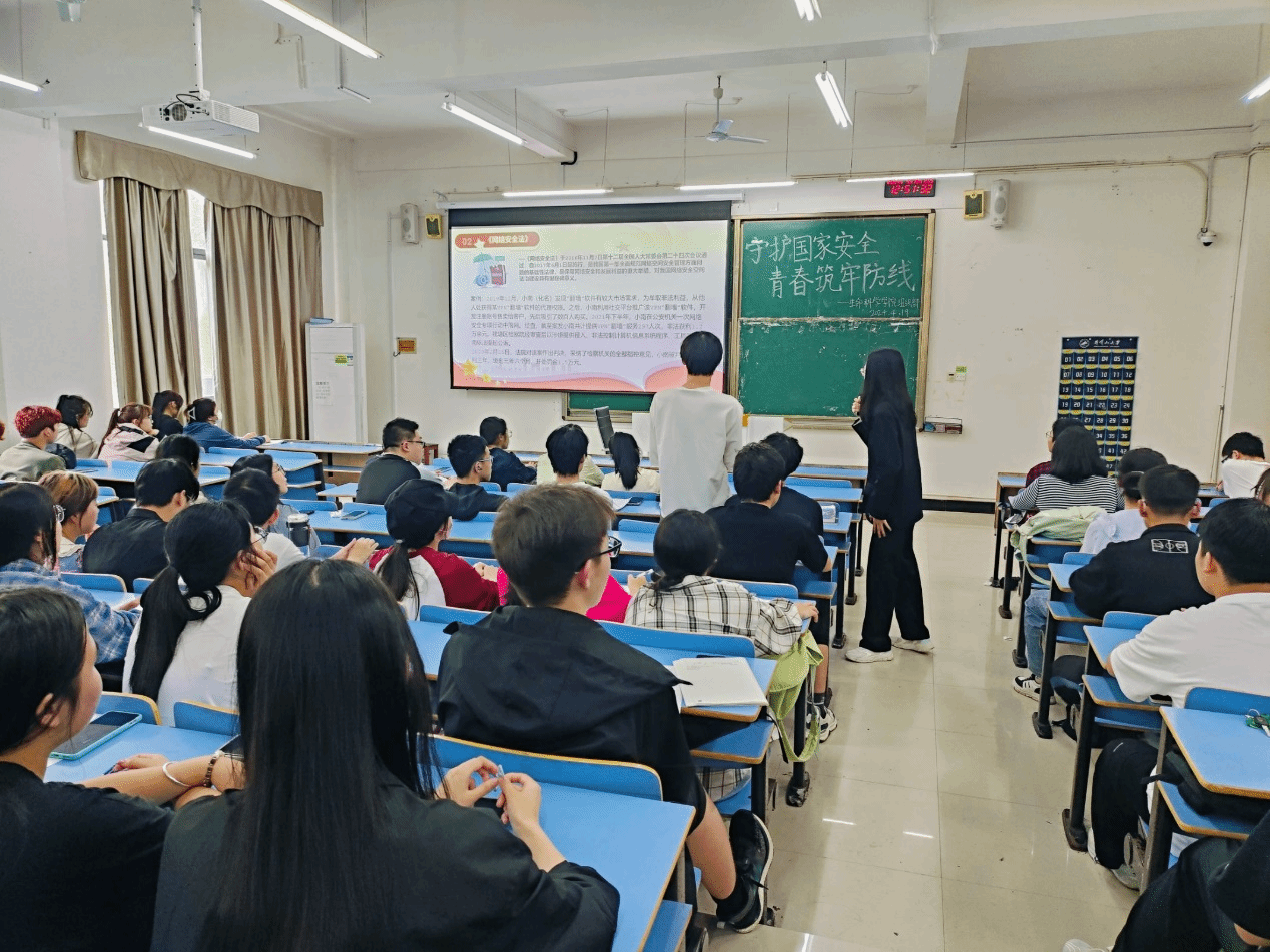 为强化我院学子国家安全意识,彰显新时代青年的担当,4月19日,院团委学生会组织部在11栋教学楼B104室开展了以“守护国家安全,青春筑牢防线”为主题的团日活动,本次团日活动由胡宋佳同学主讲,23级各班学生代表参加。