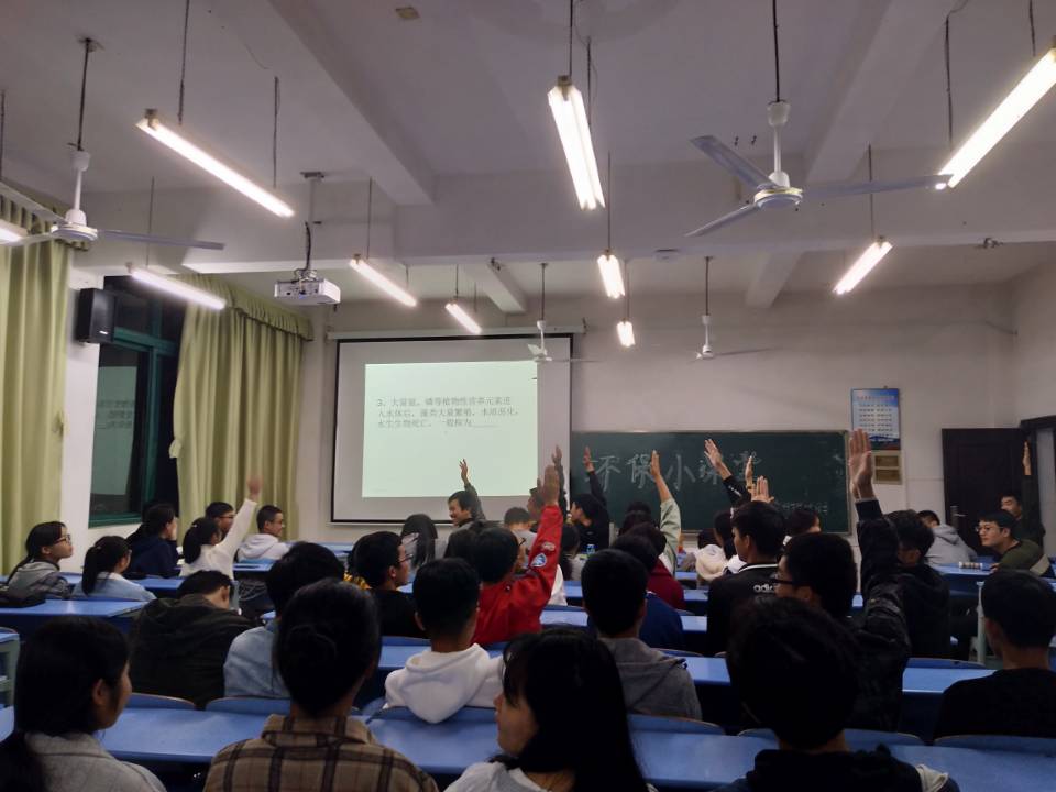 朱丽云首先以一个环保小视频作为此次课堂的开头,让同学们交流对视频内容的看法,现场气氛非常活跃。然后她就环境保护基础知识、环境污染及环境保护措施三个方面进行了具体的讲解,中间还穿插环境小知识的问答互动活动。最后的有奖竞答环节更是场面热烈。