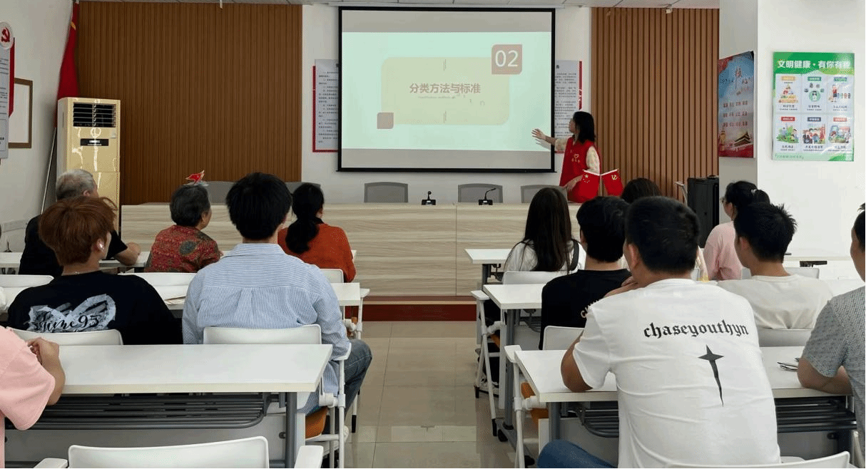 志愿者们积极投身于社区环境整治工作,认真清理垃圾并进行细致分类,有效提升了社区的整体环境卫生水平。随后,志愿者们前往社区服务中心,通过精心制作的视频和PPT等多媒体形式,向社区居民普及垃圾分类的相关知识,旨在增强居民的环保意识和实践能力。同时,志愿者们积极鼓励社区居民从自身做起,从小事做起,带头践行垃圾分类制度,并带动身边人共同参与,共同营造绿色文明的社区环境。