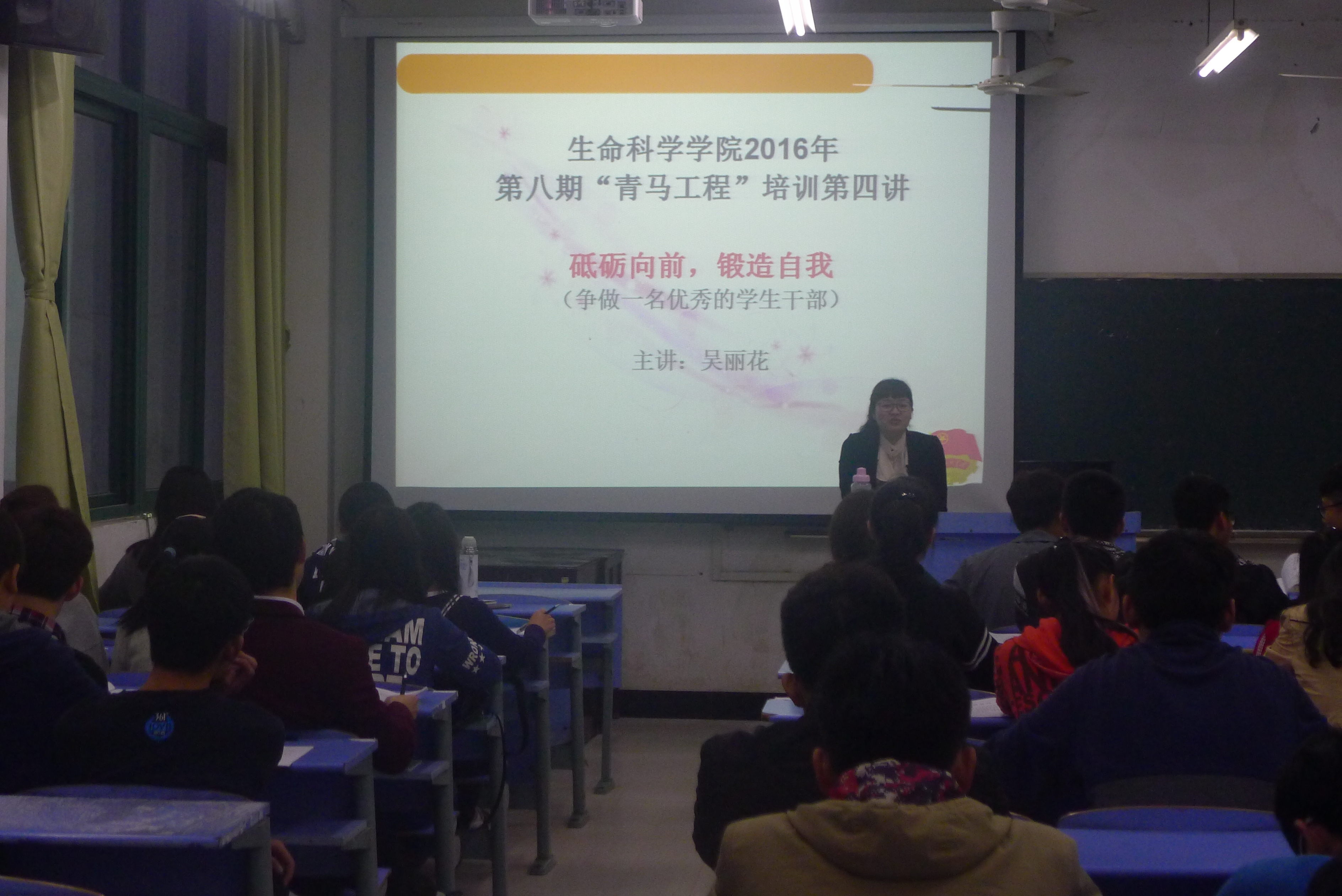 4月10日晚,我院团委副书记吴丽花老师为全体团委学生会干部、各班班长和团支书进行主题为“如何做好一名学生干部”的专题业务培训。