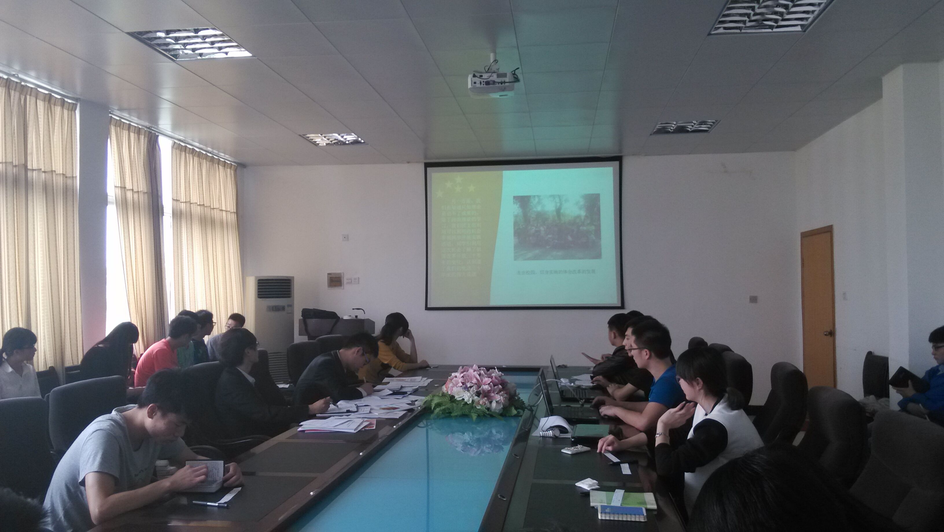 4月19日上午,学院团委在2栋401会议室举行2014—2015学年度“五四红旗团支部”评选汇报会。朱焕明老师到会指导,院团委学生会各部门部长与14个班级的团支书参加了此次评选汇报会,会议由团委学生会主席团主持。