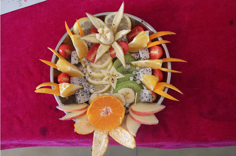 在精心细致的场地布置之后,活动在上午九时正式展开。活动中各组参赛选手们密切配合,雕刻能手娴熟地展现自己的心灵手巧。比赛中,参赛选手个个热情高涨,用自己准备的水果、果盘,在规定时间内完成了作品。期间,观众们积极参与互动,现场气氛火热非凡。比赛最后,护理学院的吴丹燕同学与她的团队凭着活灵活现、别出心裁的作品夺得了本场比赛的桂冠。我院陈文同学则带领他的团队取得了三等奖的好成绩。