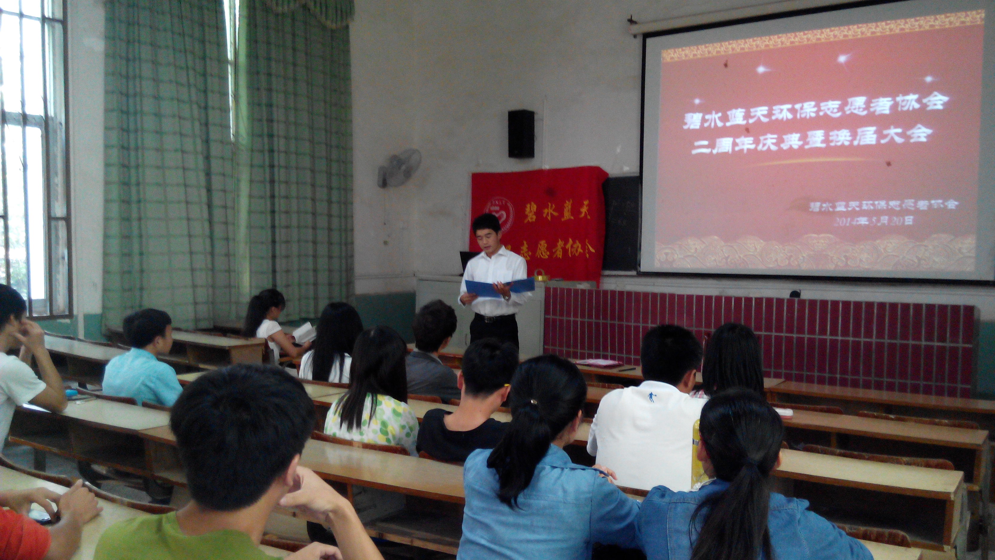 5月20日中午,碧水蓝天环保志愿者协会二周年庆典暨换届大会在2栋209成功召开,协会全体成员参与会议。
