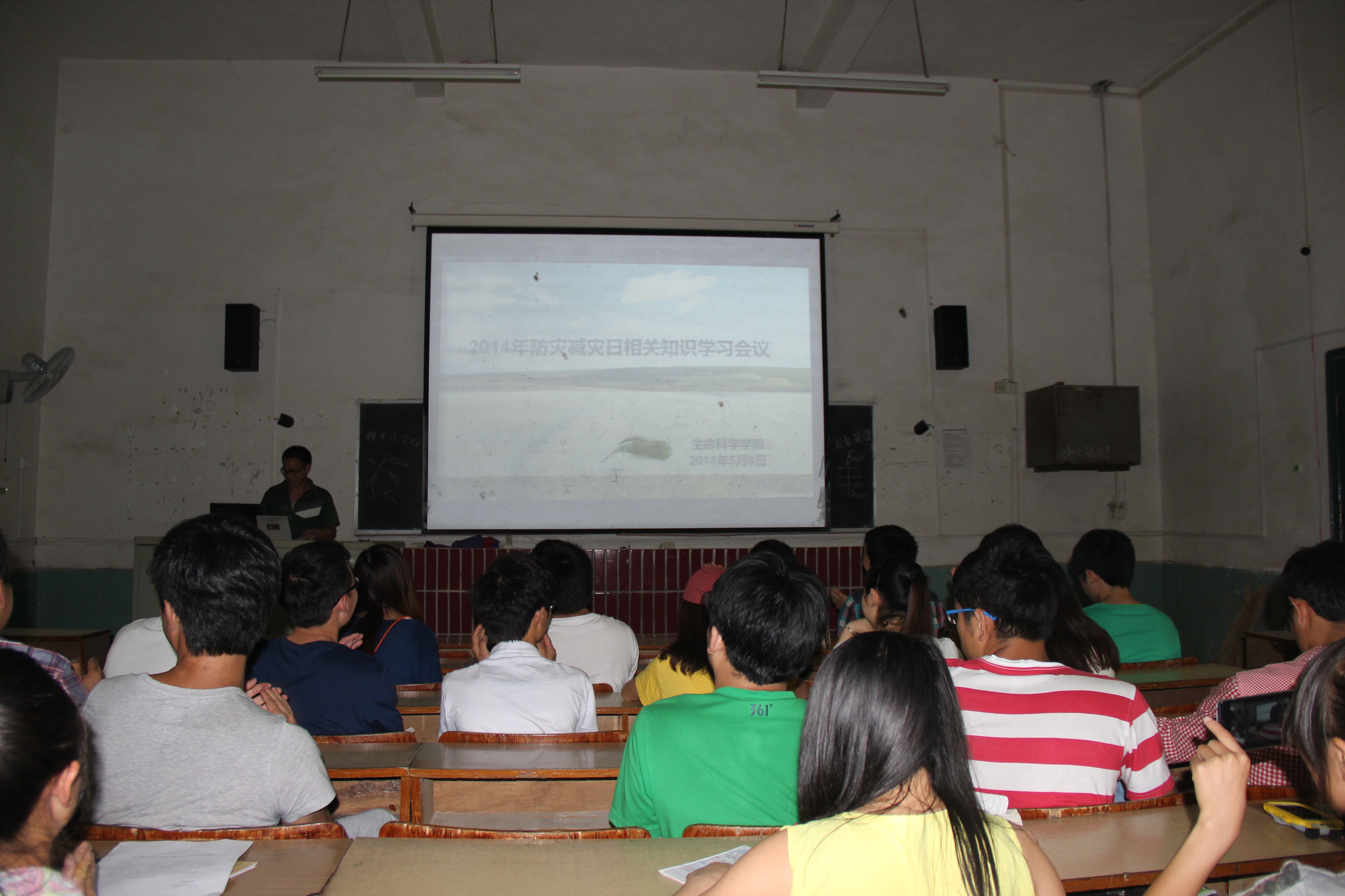 5月8日下午,学院召集各班学生代表集中在第二教学楼209多媒体教室,学习防灾减灾知识。受学院综治委委托,学院学生自律委员会负责人龚奇制作防灾减灾知识PPT进行专题讲座,以众多灾害事件案例、校内外防灾减灾经验介绍,警示和教育同学们在平时学习和生活中重视防灾减灾工作,增强防灾减灾意识。