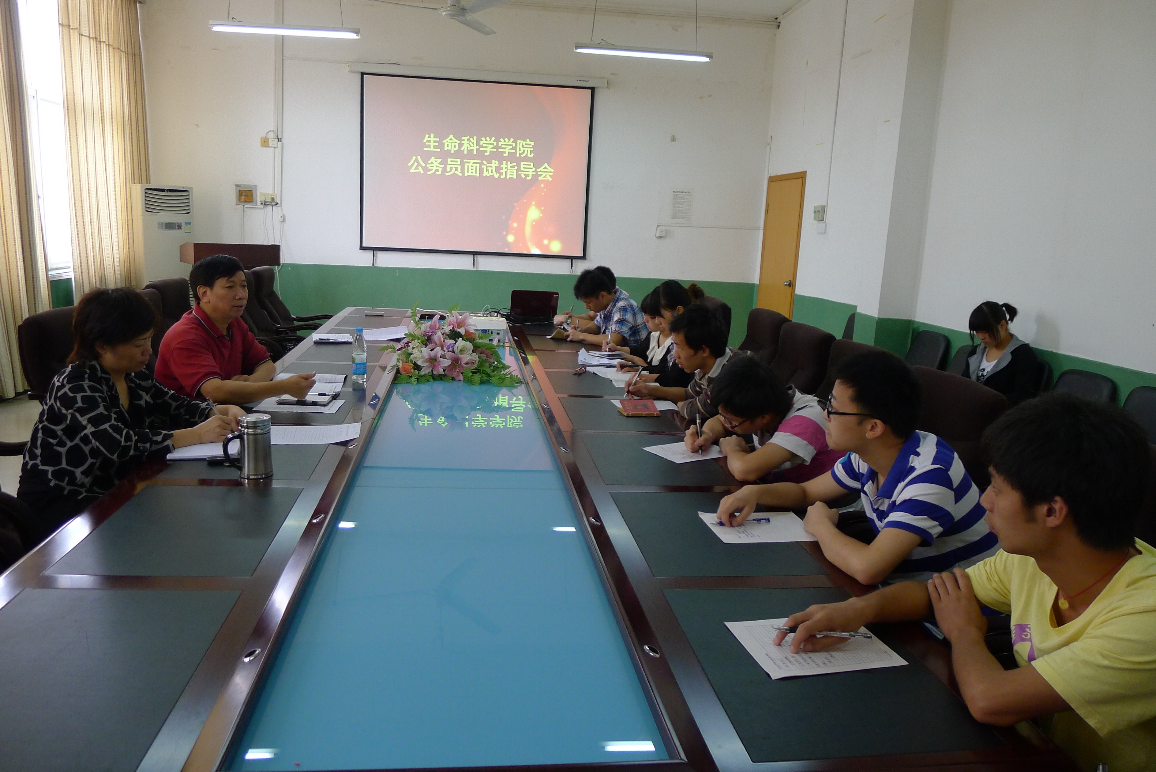 会上,许斌书记将理论与实际相结合,为同学们详细讲解了公务员考试的基本知识。他指出,公务员考试主要考查考生的计划组织协调能力、举止仪表、报考者动机考察、综合分析能力和人际交流能力、应变能力和语言表达能力等几个方面。就面试性质,他强调同学们要清楚面试细节和规范答题技巧,并就几个典型题型为同学们作了分析。肖南副书记则就考生面试的礼仪进行了指导。之后,许斌书记、肖南副书记、院团委书记肖晓为几位同学进行了模拟面试。面试结束后,几位老师就同学们在面试过程中的表现进行了点评,对于同学们存在的各种问题提出了改进意见。许书记还强调,面试过程中同学们一定要充满自信,行为举止要落落大方,语言表达要清晰明白。最后,指导会在大家的热烈掌声中圆满结束。