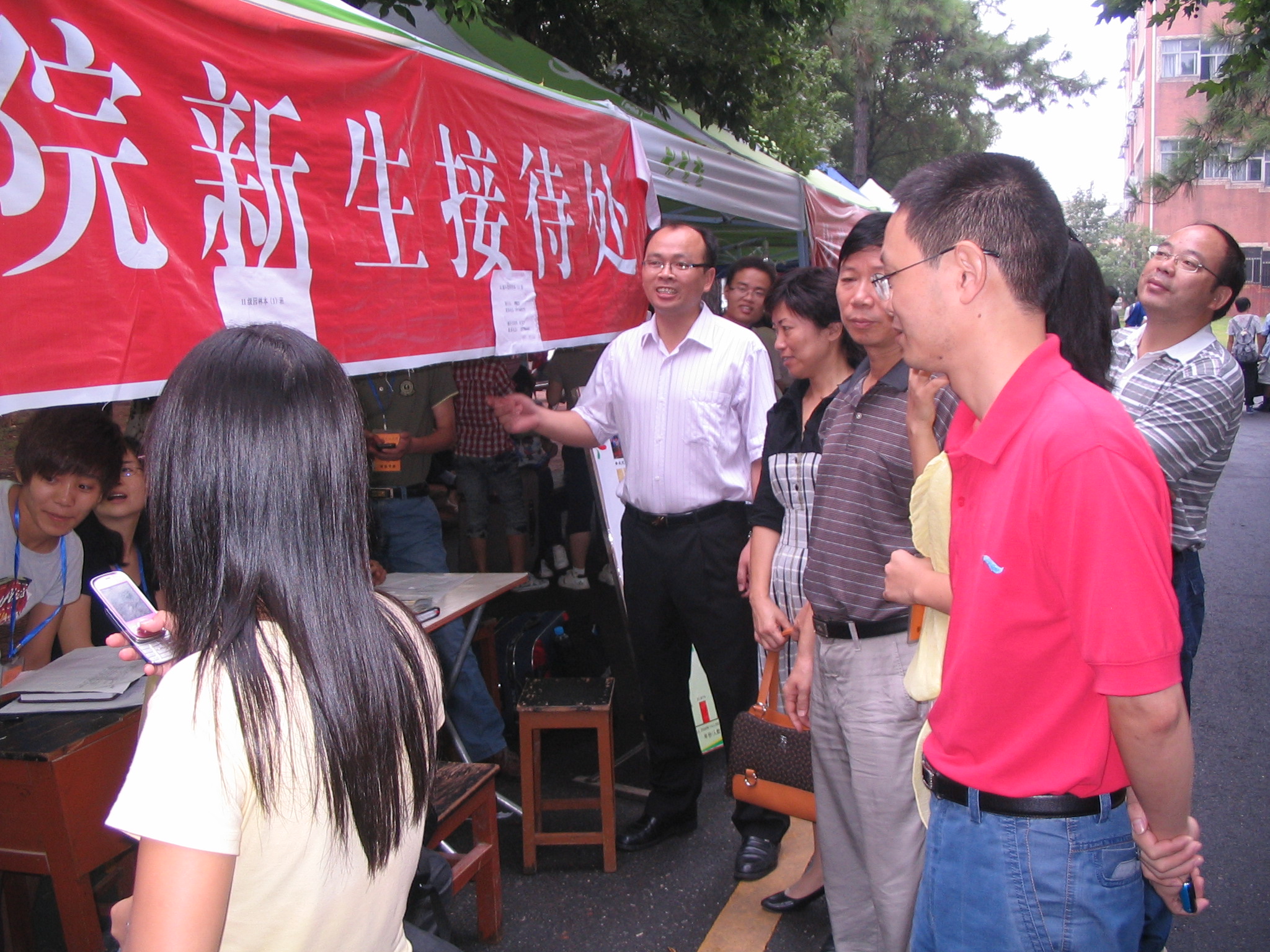 在迎新接待处,到处人头攒动,前来咨询并办理相关入学手续的新同学络绎不绝。院党委书记许斌、副书记肖南多次来到报名点详细了解新生报到情况,与新生及家长、工作人员亲切交谈,询问报到手续办理情况。新生班主任、班主任助理个个热情周到,细致认真。负责迎新工作的同学们精神饱满,他们带领新生办理入学手续,领取生活用品等等,还热情引导新生参观井大校园,一路上,迎新同学不时与新同学进行交流,并以学长的身份向新生们讲授自己在井大学习生活的点点滴滴,欢喜的表情不时地挂在他们的脸上,气氛甚是融洽。虽然迎新工作很琐碎很辛苦,但看到每一位新同学在舟车劳顿后能够尽快的办理好入学手续,熟悉校园环境,大家甚感欣慰。