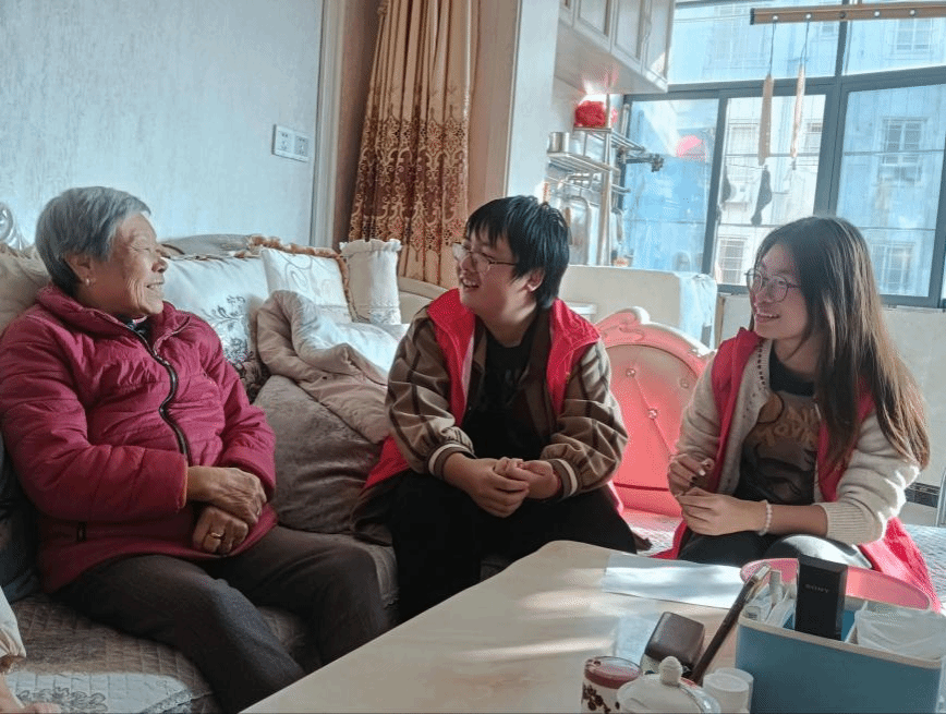 清晨,志愿者们早早来到社区集合。社会实践部工作人员周锦程细心地为每位志愿者分统一服装,并认真梳理每位独居老人的基本信息,确保服务能够精准对接老人需求。志愿者们分组行动,带着满满的爱心走进社区老人的家中。"阿姨您好,我们是生命科学学院的志愿者,来看望您啦!"清脆的敲门声和亲切的问候,让原本安静的房间顿时充满了生机。志愿者们坐下后,耐心倾听老人们讲述生活点滴,细心询问他们的日常起居。有的老人开心地拿出相册,分享往事;有的老人拉着志愿者的手,诉说心里话。这一刻,年龄的差距在真诚的交流中消融,温暖的陪伴让这个冬日变得格外温馨。