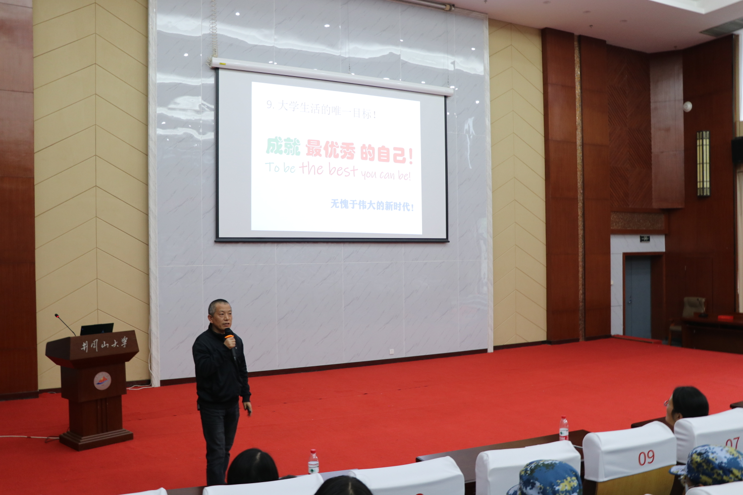贺根和作了《弘扬井冈山精神,争做新时代好青年》的主题报告。贺根和从我的大学、我的专业、我的行动三方面,重点介绍了学院的组织架构、师资力量、学科建设、科研平台、办学成果和育人成效,使新生进一步了解了院情,增强了新生的荣誉感和认同感。从专业认知和专业学习的角度,为新生描绘了专业发展前景,进一步指明了专业学习的方向和方法。要求同学们弘扬井冈山精神,锁定目标,制订计划,刻苦学习,持之以恒地付出行动。鼓励同学们不断地挖掘自己的兴趣、才华和禀赋,构筑自己的梦想;在不断实践中发现自己的不足和短板,努力提升自我,完善自我。
