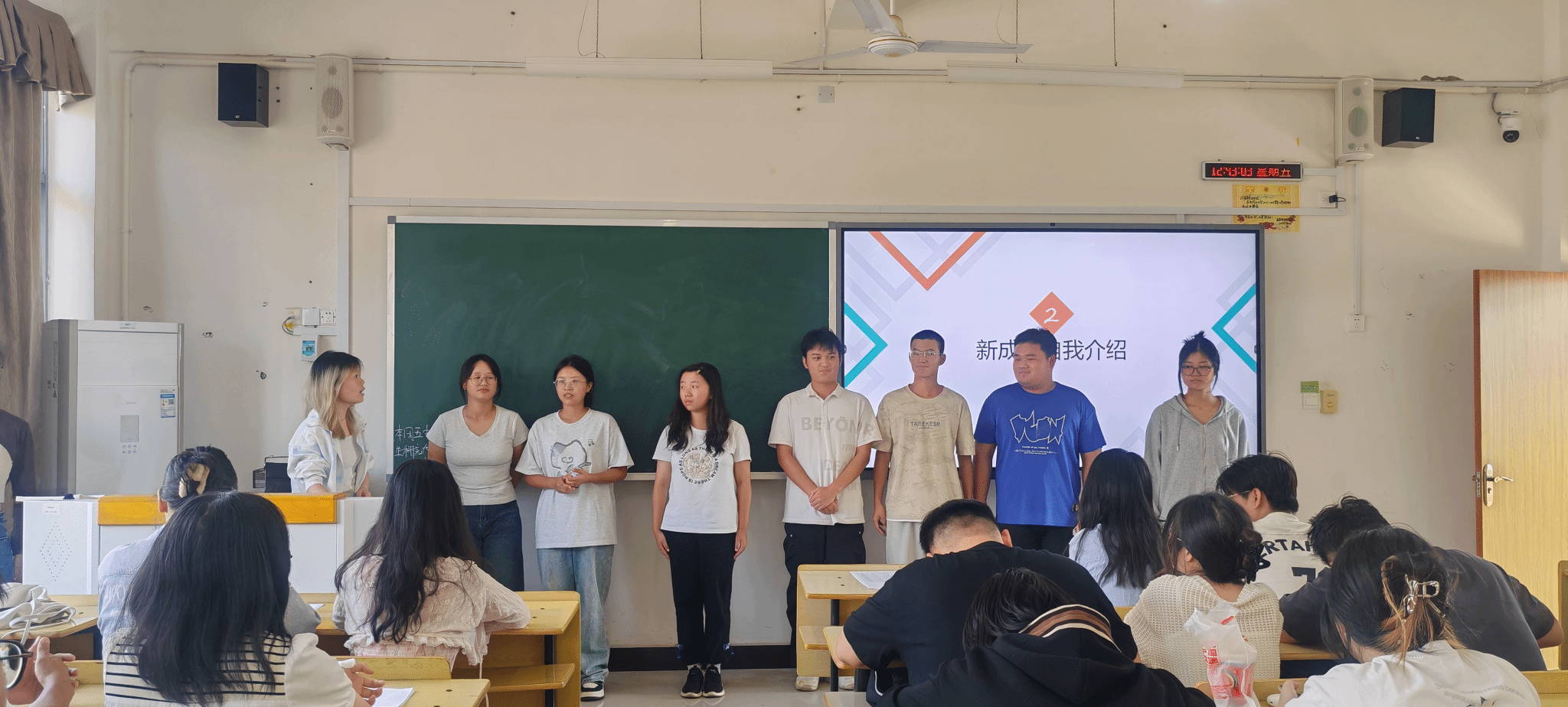 首先,学院大自委第十七届主席团成员薛舒心、刘佳勇依次上台发言,对新成员的加入表示热烈欢迎,简要介绍了各部门的工作和活动,表示了对上一学年工作的肯定,并希望大家在接下来的工作中努力奋斗,同心协力。