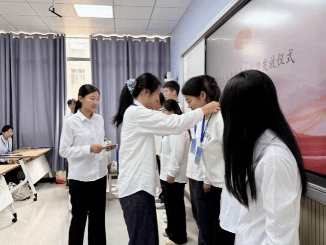 接着进行的是新成员工作牌发放仪式。第十九届各部门部长依次为资助服务部、心理服务部、学风督察部、宿舍管理部的新成员发放工作牌。会上开展了学生干部宣誓仪式。