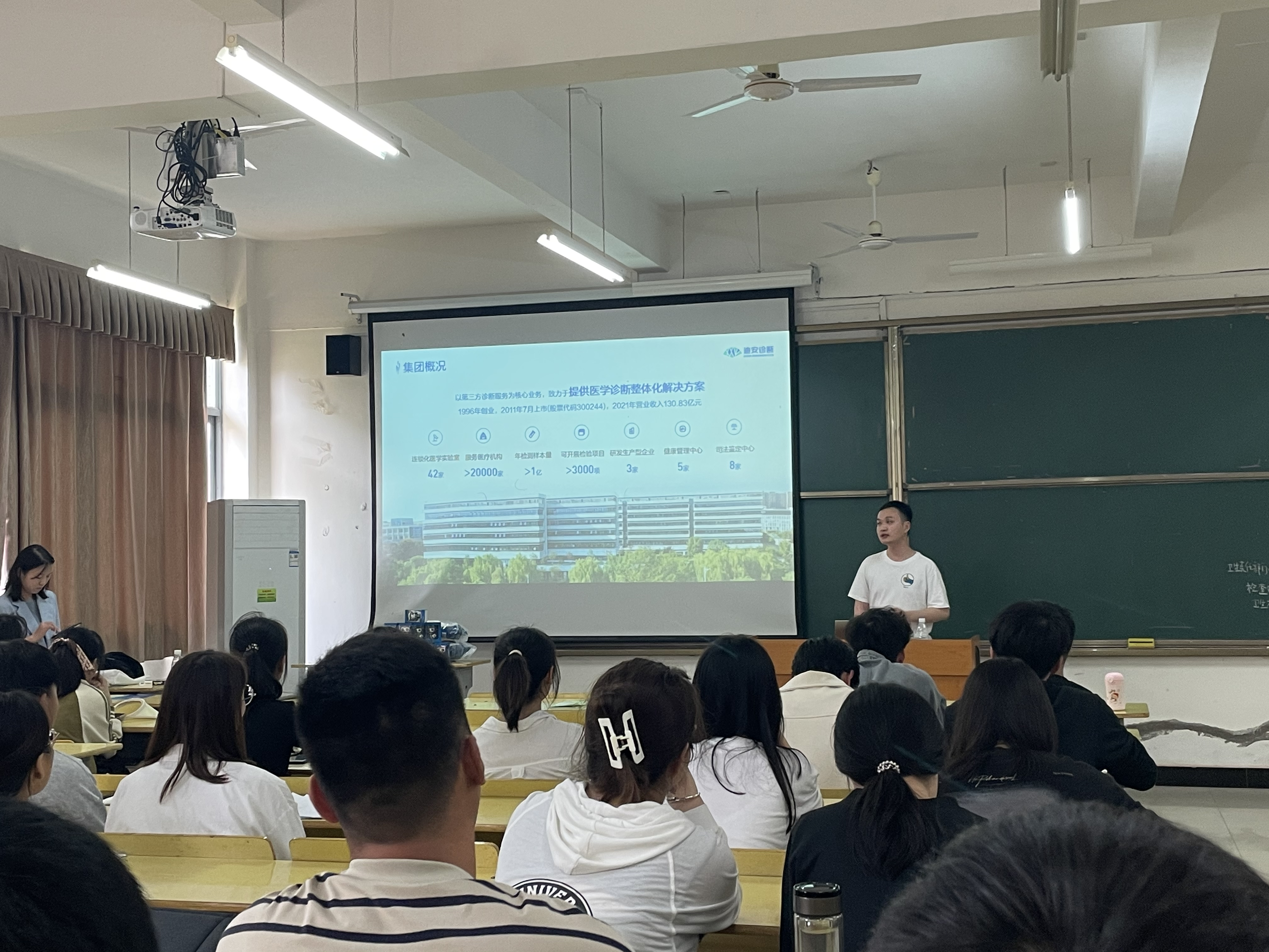 宣讲会上,陈中浩通过介绍公司的发展历程、重点领域、业务模式、自研产品、产业生态链、荣誉资质等多方面内容,使在场的同学全方位认识迪安。为遵循“让公司成为员工的实现价值的舞台”的人才理念,公司将以人才为核心资源,重视人才发展,开展各个培训项目支撑内部员工学习与发展,对新员工也会进行三至六个月的培训与考核,提高其专业能力。陈中浩在招聘会会上表达了公司对各类人才的强烈需求,希望毕业生积极应聘。在问答环节,迪安公司工作人员对同学提出的问题依次进行了解答,同时建立了群聊,以便于同学们对公司有更深入的了解和简历投递。会后,有十余名毕业生递交了求职简历。