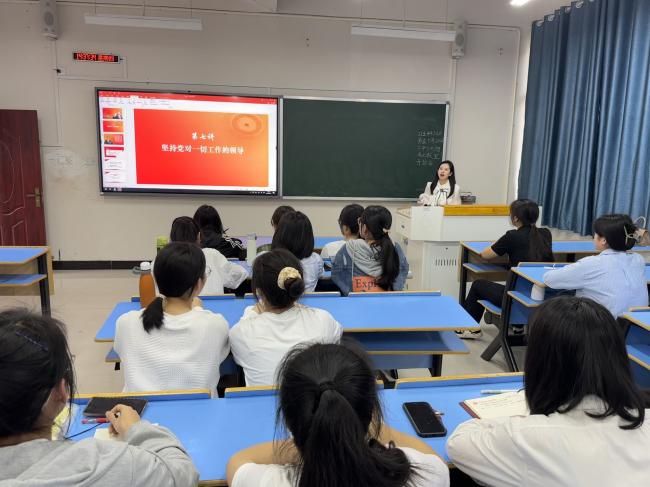为推动青年大学生更好地学习贯彻习近平新时代中国特色社会主义思想,更加自觉用这一思想武装头脑、指导实践、助力成长,5日25日下午,学生党支部书记任梦雅在21栋103为全体学生党员上专题党课——《习近平新时代中国特色社会主义思想三十讲》第七讲《坚持党对一切工作的领导》。