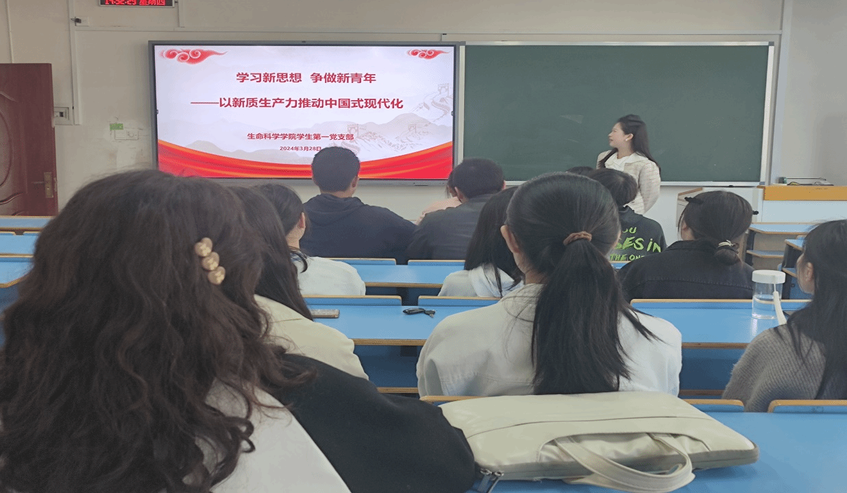 本次党课的主题为“学习新思想 争做新青年——以新质生产力推动中国式现代化”。任梦雅以“新质生产力”为着眼点,从“什么是新质生产力”、“深刻认识新质生产力的基本内涵”、“深刻把握新质生产力”等方面,给大家上了一堂主题鲜明、内涵深刻、针对性强的党课。她指出,更高素质的劳动者是新质生产力的第一要素,发展新质生产力,需要能够创造新质生产力的战略人才,作为学生党员要充分发挥专业优势,认真学习专业知识,争做新型劳动者,更大范围地创造社会价值,为社会主义现代化建设贡献力量。