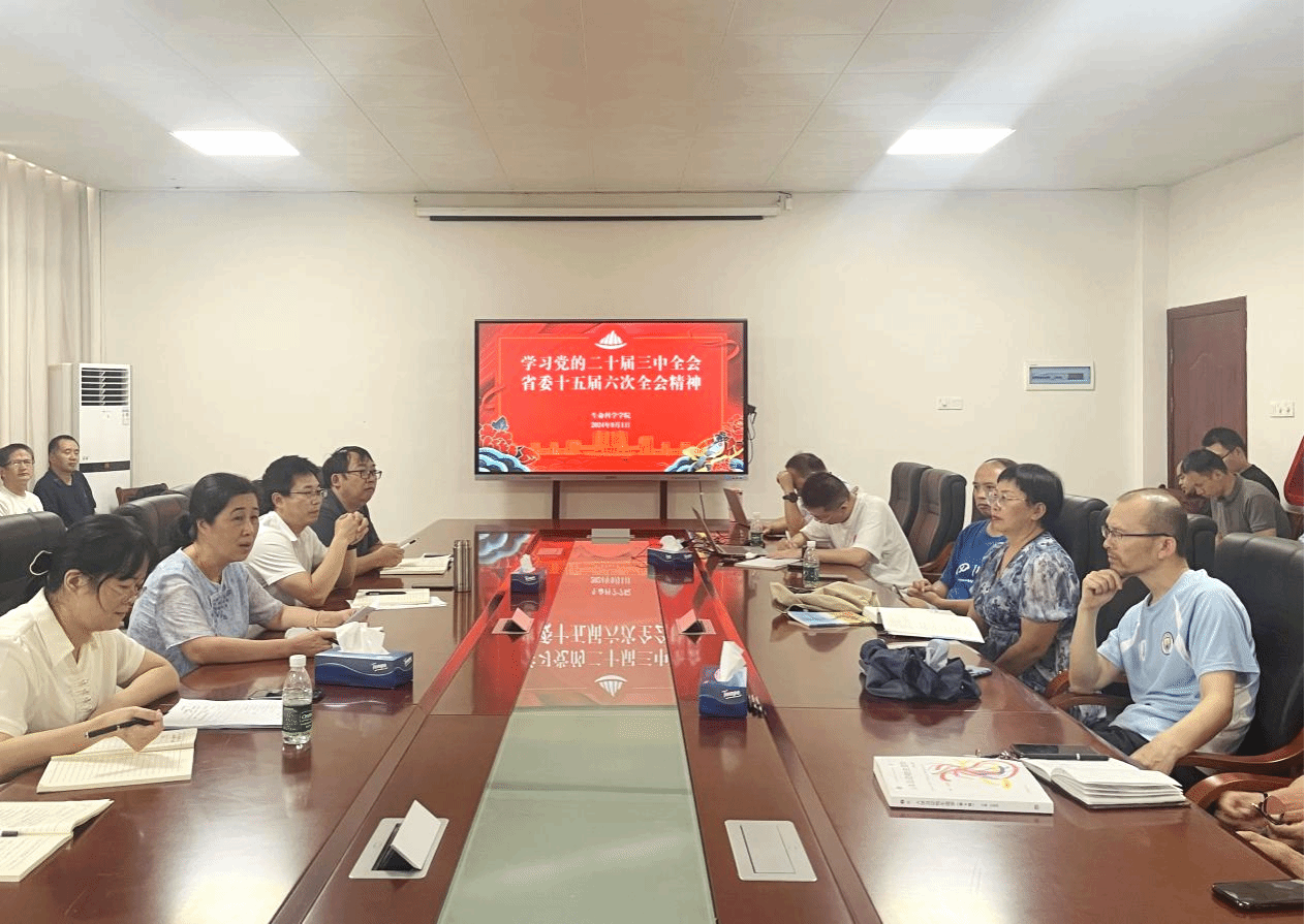 会议专题学习了《中国共产党第二十届中央委员会第三次全体会议公报》,传达学习了省委十五届六次全会精神和学校三届六次全体(扩大)会议精神,学院党委理论学习中心组成员就学习全会精神作交流发言。