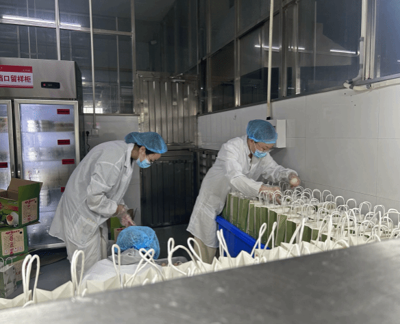 在学生第二食堂开展“浓情粽意迎端午,同心志愿暖人心”端午节主题志愿服务活动,毕业生党员志愿者们分成小组,将粽子、鸡蛋、咸鸭蛋等食物放入手提袋并摆放整齐,同食堂工作人员一同将饱含祝福的端午节礼包送至老师、同学们的手中。以实际行动展示共产党员的先锋底色,在为人民服务中展现了新时代青年的责任与担当!