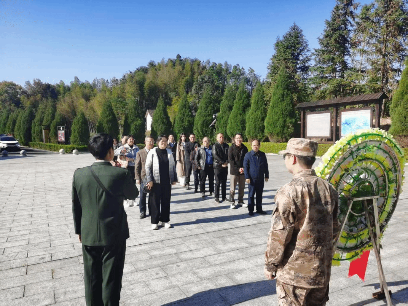 活动在庄严的缅怀仪式中拉开序幕。在黄公略烈士纪念碑前,全体党员整齐肃立,共同向这位为革命事业英勇献身的先烈敬献花圈、默哀致敬。现场,大家聆听了黄公略烈士的革命事迹,深刻感悟其“抛头颅、洒热血”的坚定信仰与忠诚担当,共同接受了一次深刻的思想洗礼。