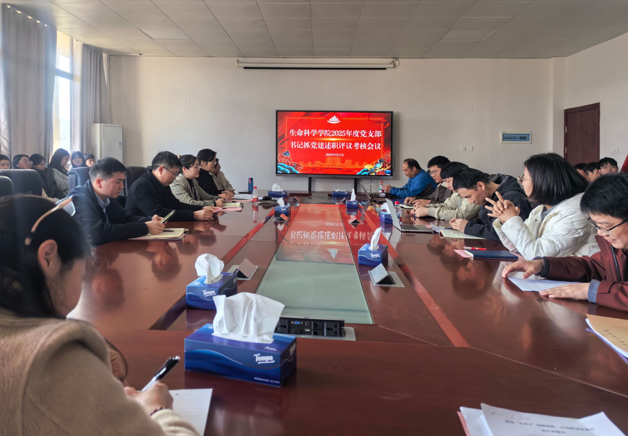 2025年3月11日下午,生命科学学院在21栋418会议室召开了2025年度党支部书记抓党建述职评议考核会。校党委组织部委派指导员、建筑工程学院党委副书记吴丽花莅会指导,学院党委班子、师生党员代表参加,会议由学院党委副书记何旭梅主持。
