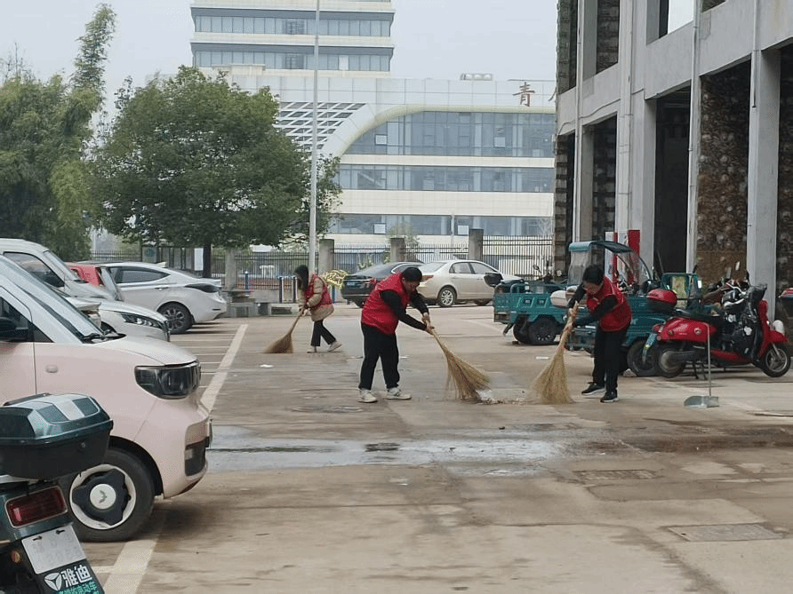 活动伊始,志愿者们在新生社区服务中心前集结,明确分工、整装待发。大家身着统一的红色志愿马甲,手持扫帚、簸箕、垃圾袋等清洁工具,迅速投入到社区环境整治行动中。在社区主干道、居民楼前、停车场等区域,志愿者们发扬不怕脏、不怕累的精神,仔细清扫路面的落叶、纸屑、烟头等垃圾,认真清理卫生死角和绿化带内的杂物。大家分工协作、配合默契,有的手持扫帚清扫路面,有的弯腰捡拾垃圾,有的用簸箕收集杂物,原本散落着垃圾的地面很快变得干净整洁,社区环境焕然一新。