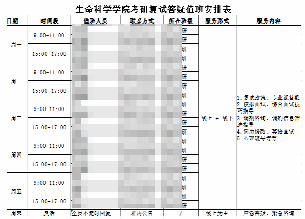 学院高度重视考研复试帮扶工作,为将精准服务落到实处,率先开展全院考生信息全面摸排工作,详细统计考生一志愿院校、专业、分数、复试科目及调剂意向等关键信息,精准掌握不同考生的备考痛点与需求。依托师生骨干组建考研帮扶先锋队,紧扣学科特色按生物科学、环境工程分设两个专项帮扶小组,实现帮扶工作的专业化、分类化推进。先锋队同步完成系列筹备工作,精心整理复试经验 PPT、专业课考点等资料形成复试资料包,搭建腾讯会议、企业微信线上答疑群,制定线上+线下专属答疑值班表,构建起全方位、常态化的帮扶平台,为后续精准帮扶工作筑牢坚实基础。