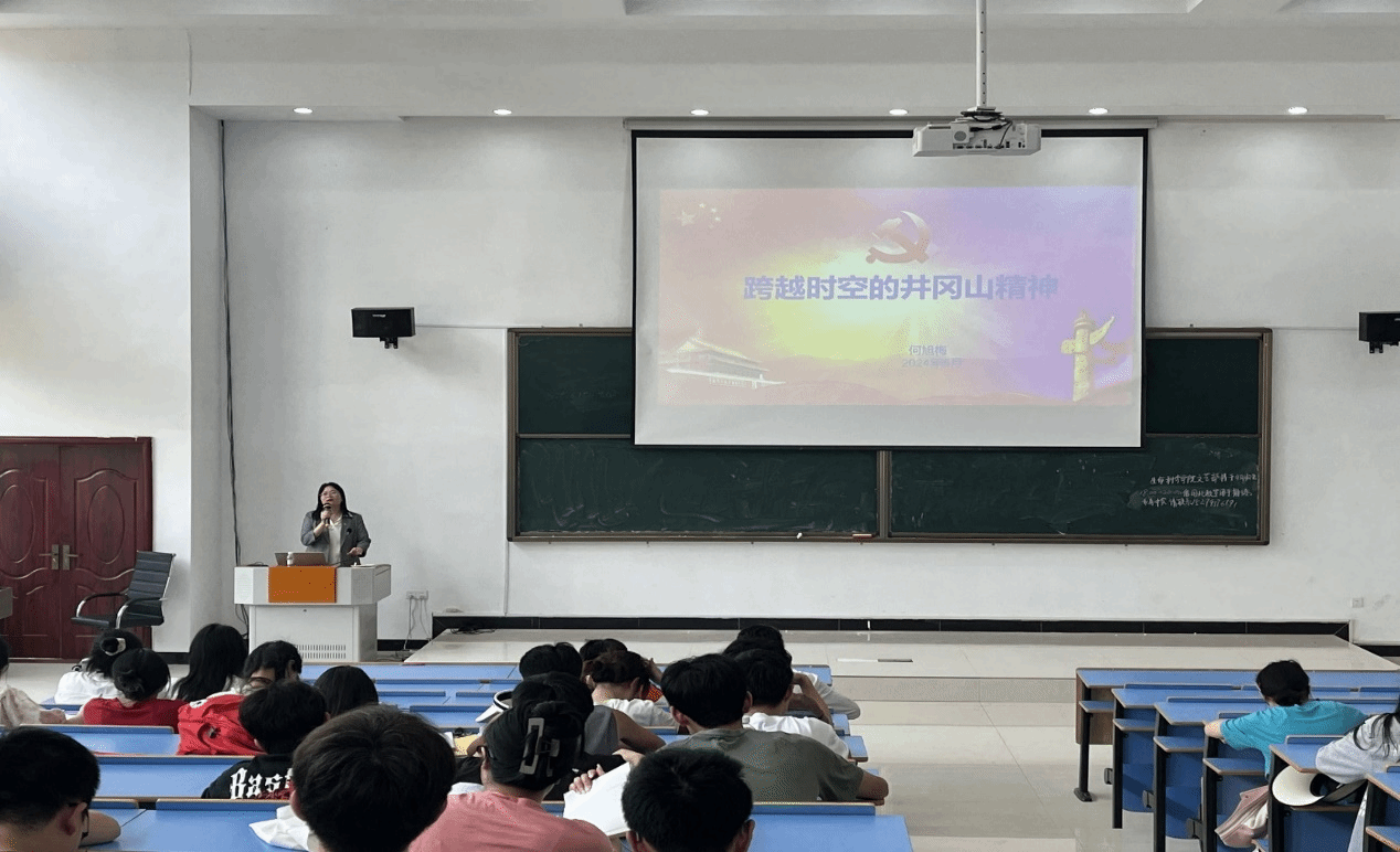 为更好弘扬红色文化,强化学生对井冈山精神的领悟,学院于5月8日在21栋教学楼106教室开展了《跨越时空的井冈山精神》党课,本次党课由学院党委副书记何旭梅主讲,入团积极分子、入党积极分子及映山红班学员参与。