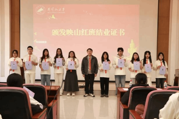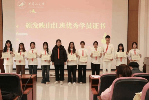 仪式伊始,全体人员起立奏唱中华人民共和国国歌。国歌奏毕后,肖虹老师宣读《井冈山大学映山红班(第三期)结业学员名单》和《井冈山大学映山红班(第三期)优秀学员名单》。优秀学员代表随后登台分享成长感悟,并表态将把红色精神融入专业学习、践行青春使命,发言引发在场学员共鸣。掌声中,结业证书与优秀学员证书的颁发环节正式开启。老师们依次为学员颁发结业证书与优秀学员证书。