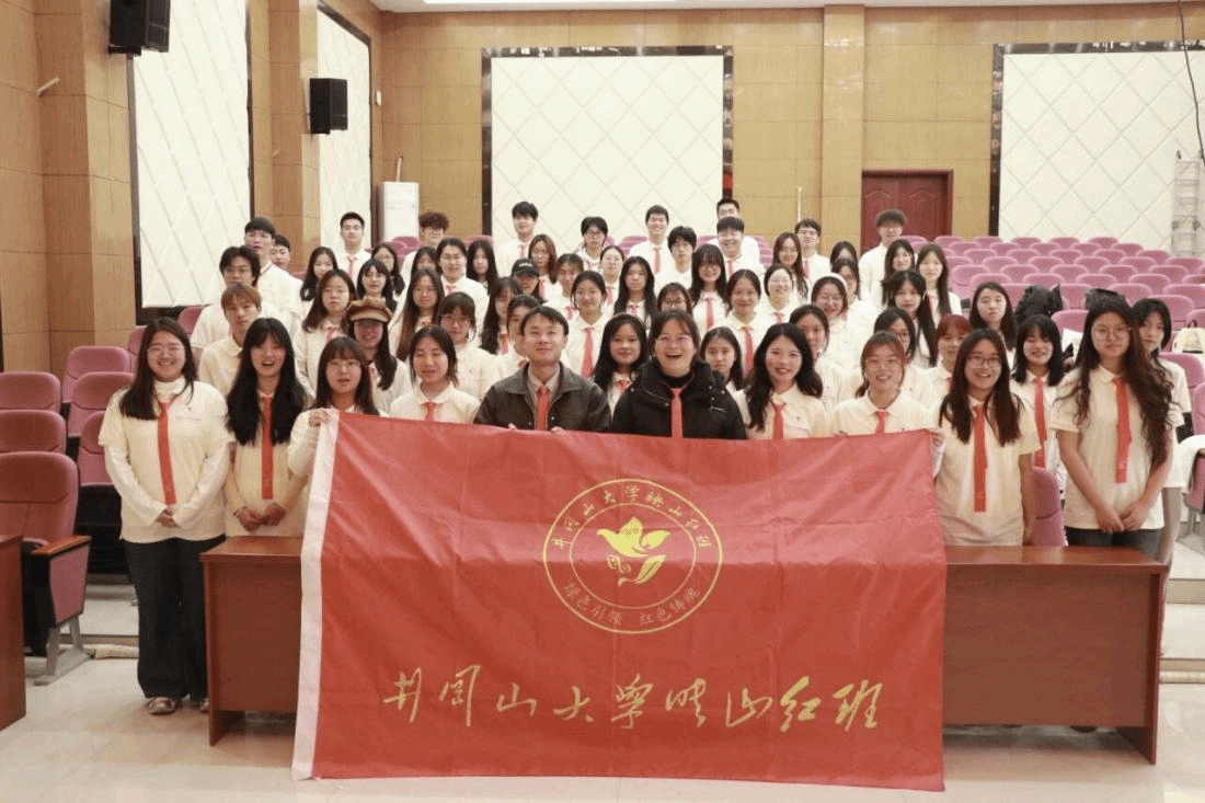 全体参会人员移步教室前方合影留念,相机快门按下的瞬间,定格了映山红班学员们的青春笑颜,也定格了这段充满红色印记的成长旅程。